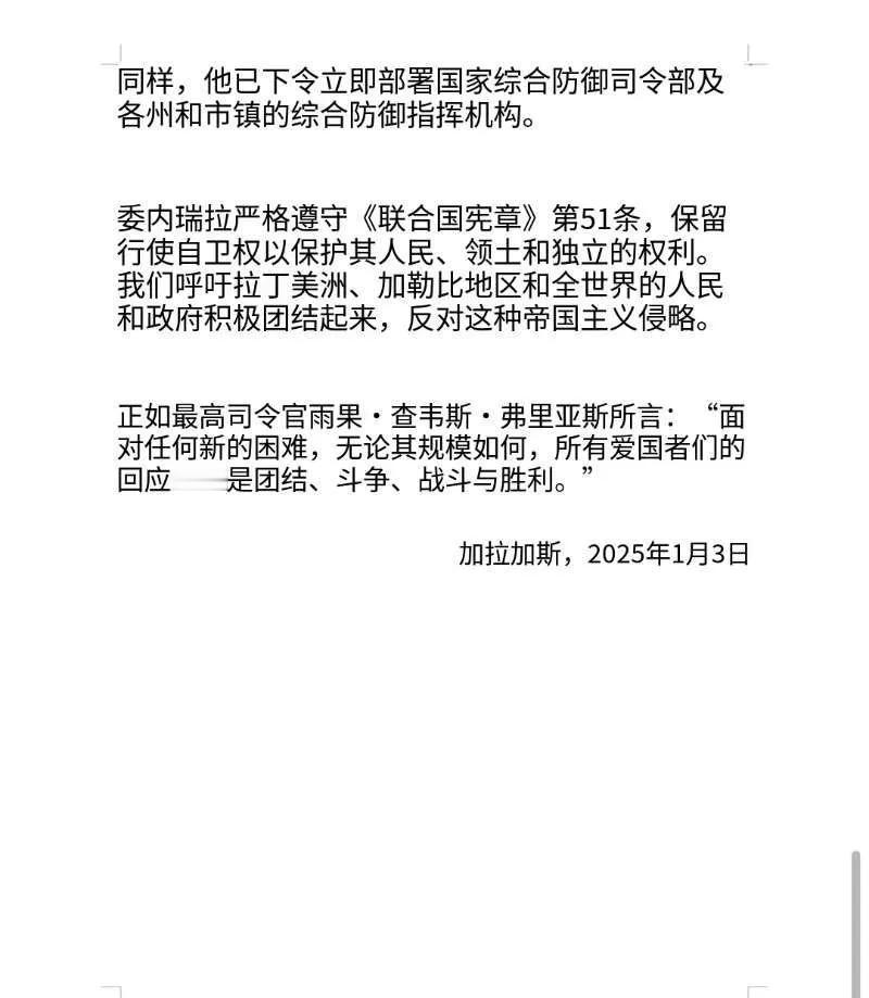 美国如此对待它的邻国 联合国在哪里 国际法在哪里 这是委内瑞拉政府的声明