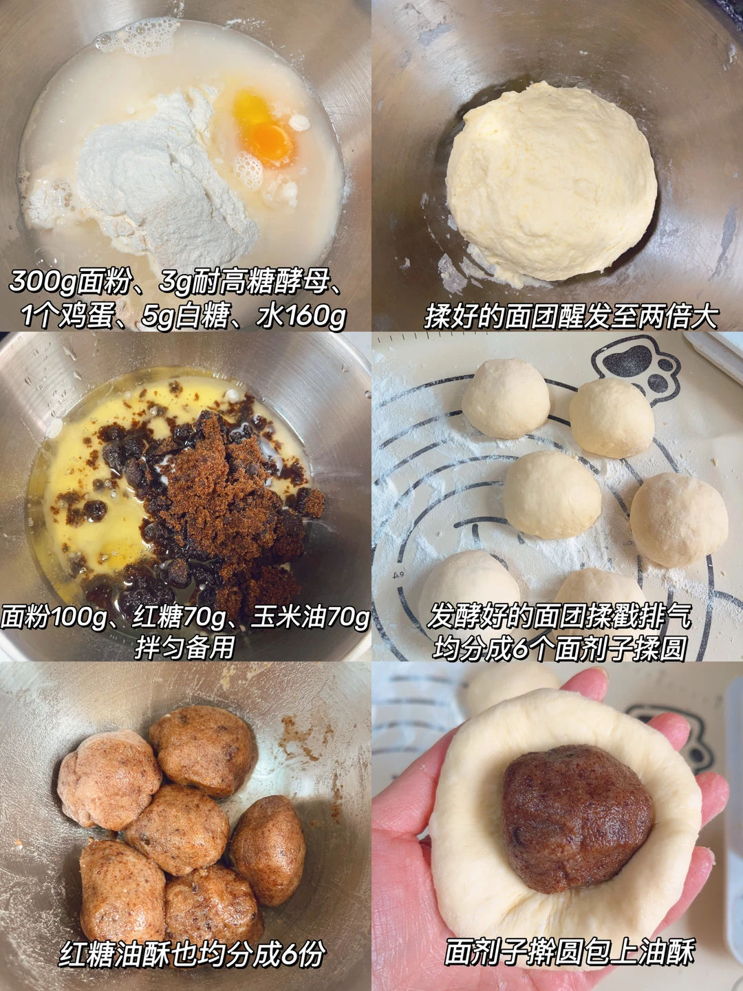 面团:300g面粉、3g耐高糖酵母、1个鸡蛋、5g白糖,160g清水