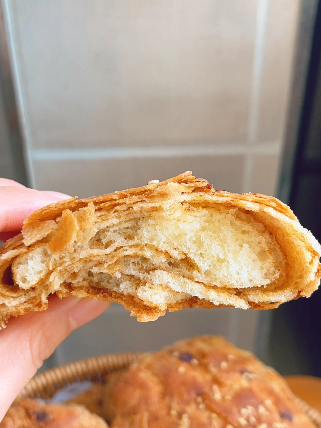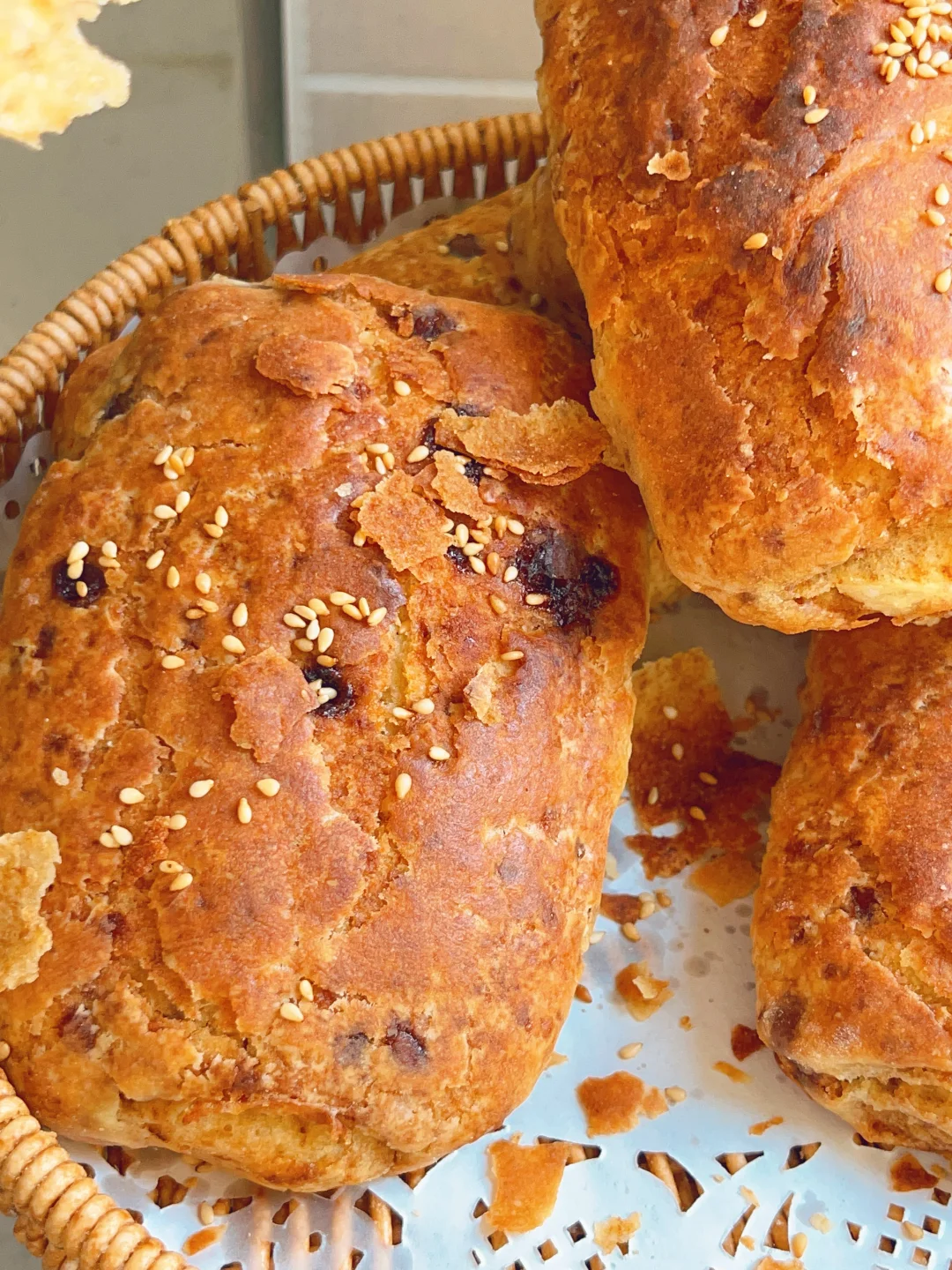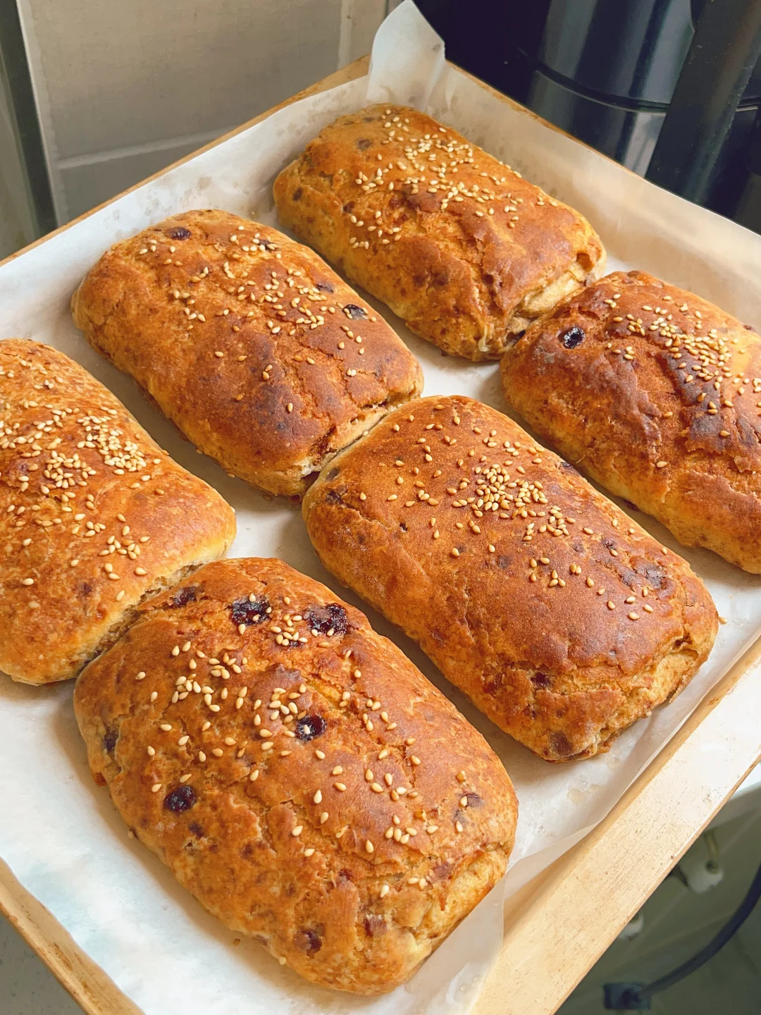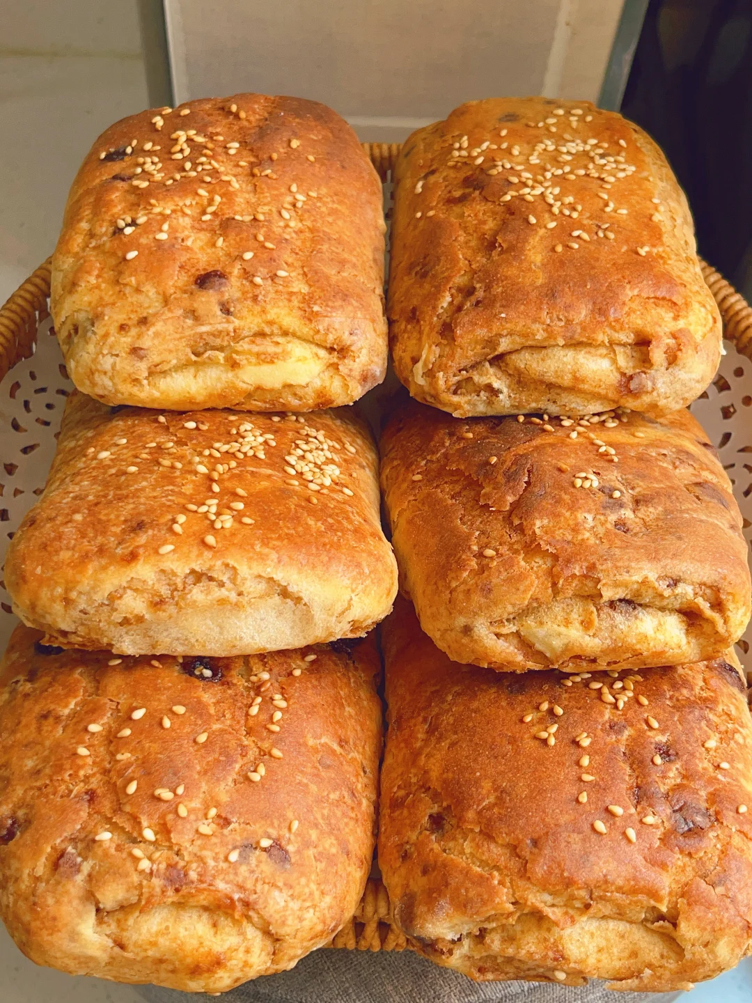 5⃣️擀好的饼子刷一层油撒点白芝麻二次醒发30分钟,烤箱上火210度下火190度烤15分钟