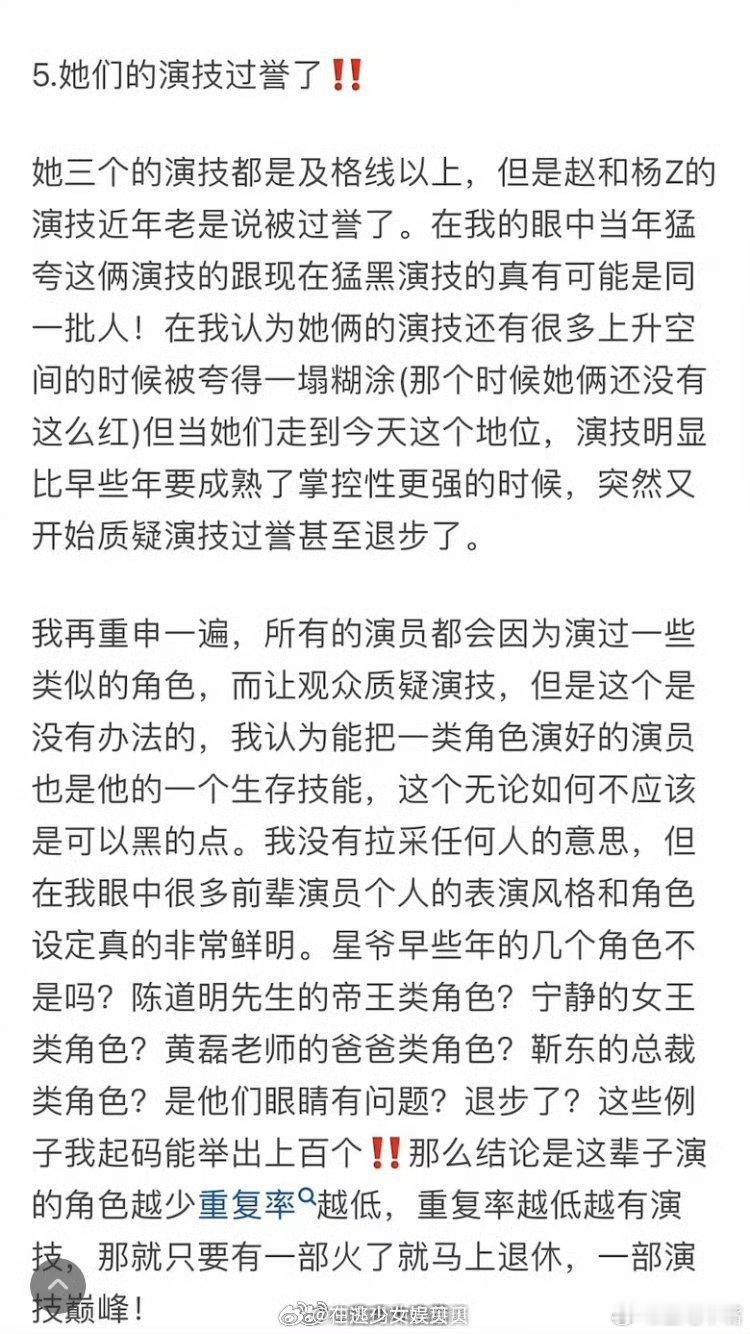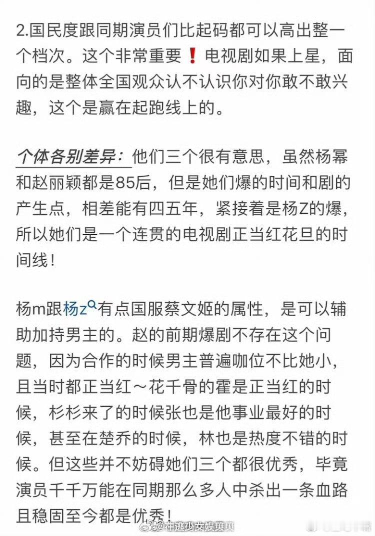 网友上万字客观评价杨紫杨幂赵丽颖本嘴基本上看完了!很有文字功底,而且很了解这三人的过去和现在!分析的不错!大家认同吗?