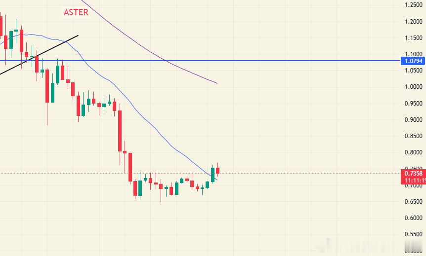 既然有粉丝问到ASTER,那么我下期视频给你们讲讲,最低是来到了0.65,距离我之前说的0.5只差一步之遥,还能不能下破0.5,能不能动手?币圈