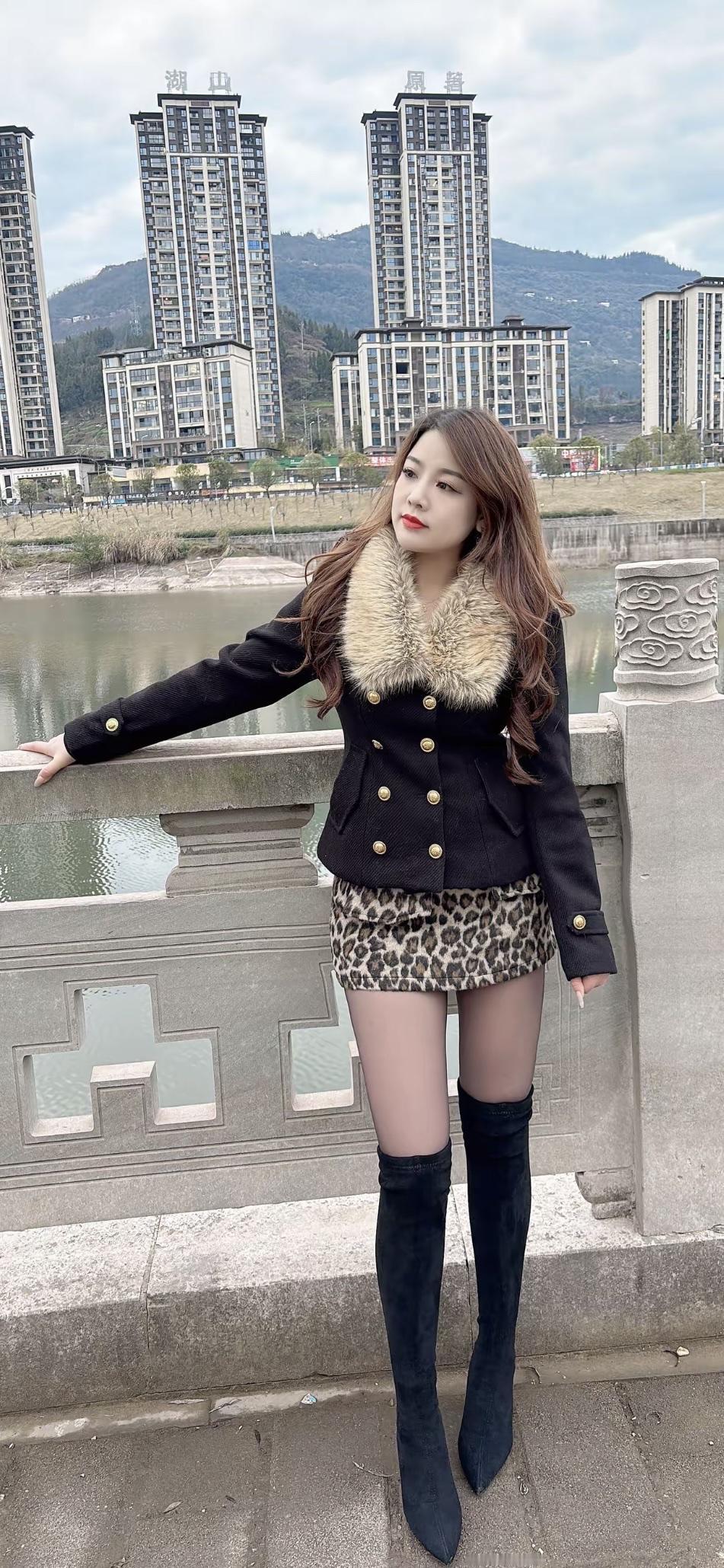 冬日穿搭指南:毛绒外套+豹纹短裙+高筒靴,时尚又保暖!🌟👗👢