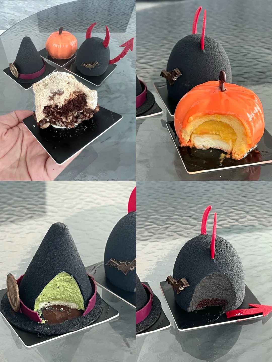 对于手残或者像我一样懒的家人们 一秒就可以拥有百万美妆博主同款妆容哟 拍一张发朋友圈同样应下万圣节的景呀 - 穿个最像鬼鬼的衣服 扎个最像鬼鬼的发型 打开轻颜 风格里面选万圣节 快来试试吧! - The Room万圣节主题的慕斯也太可爱了 好看又好吃 黑帽子是抹茶味的! 小恶魔是黑芝麻味的! 最喜欢这两个味道[喝奶茶R][喝奶茶R] -