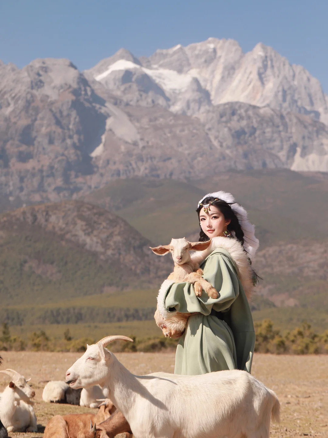 2月旅行|丽江玉龙雪山下放羊的小卓玛写真🐐