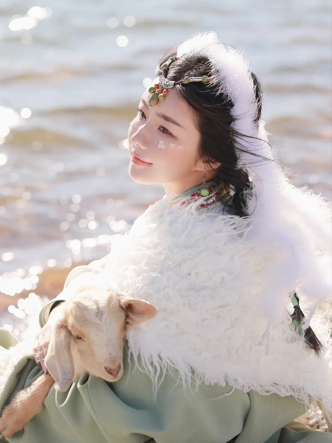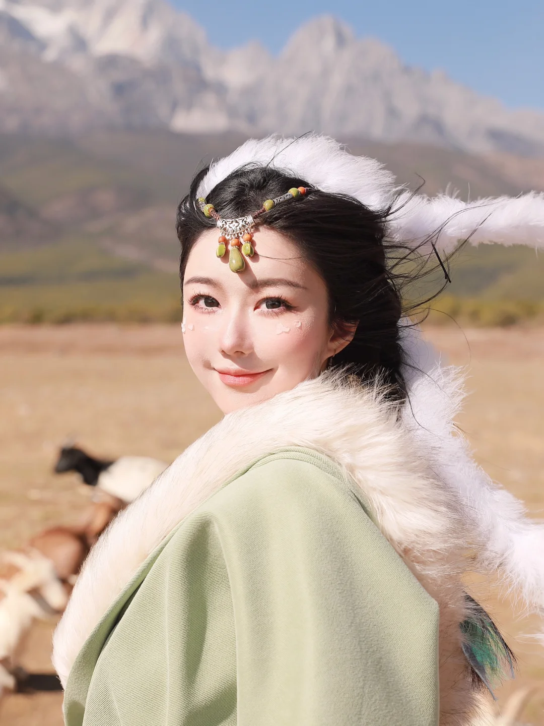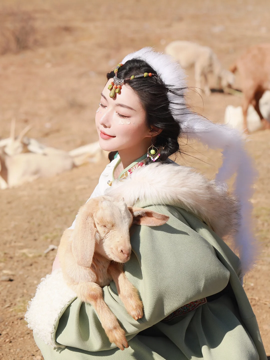 心心念念要拍的藏族写真终于实现了 跟工作室说希望有小羊、湖泊和雪山 于是被摄影师带到玉龙雪山下的一个很难找到大草坪 说这是他的秘密基地 这里有个放羊的老爷爷会收门票 大概50元拍一组 虽说是秘密基地 但还是看到陆续有人来拍写真和婚纱 - 不得不说这里的条件太艰苦了! 风大到头发和发饰乱飙 脸上嘴里全是沙子 ⚠️千万不要戴我头上的这个白毛条,头发也要扎紧不要留刘海,不然真的一直糊脸上很难出片 - 小羊真的太可爱太乖了 还会时不时亲我一下 咬手指也一点都不疼 好想一直抱着撸哈哈 - -
