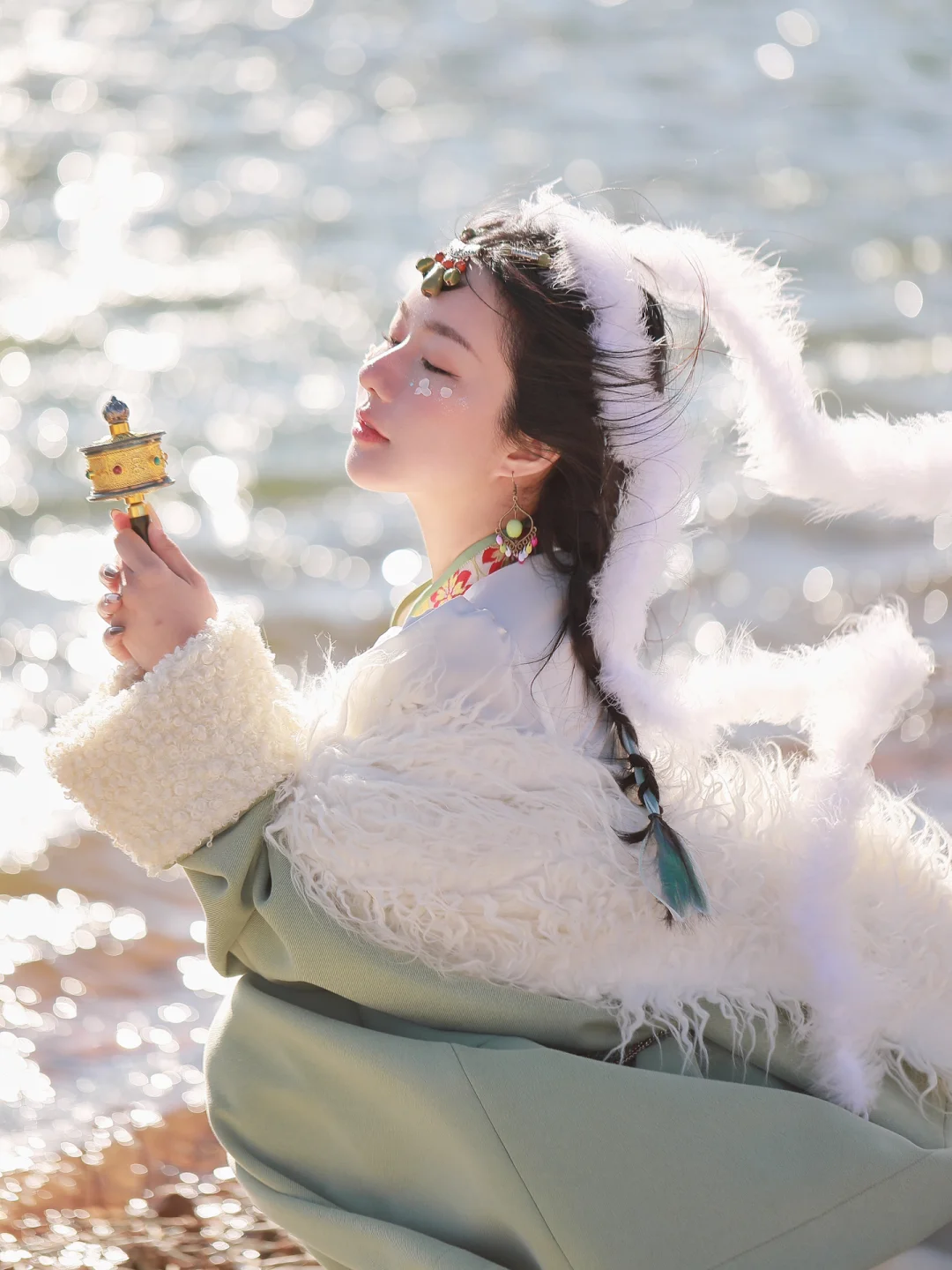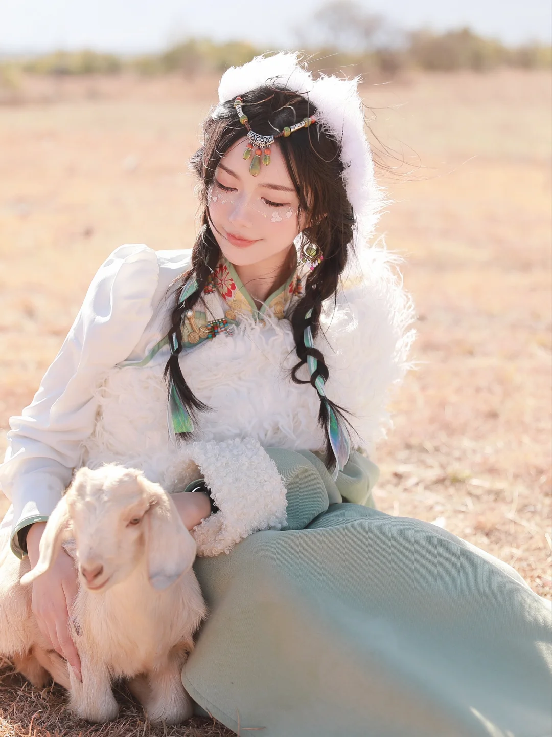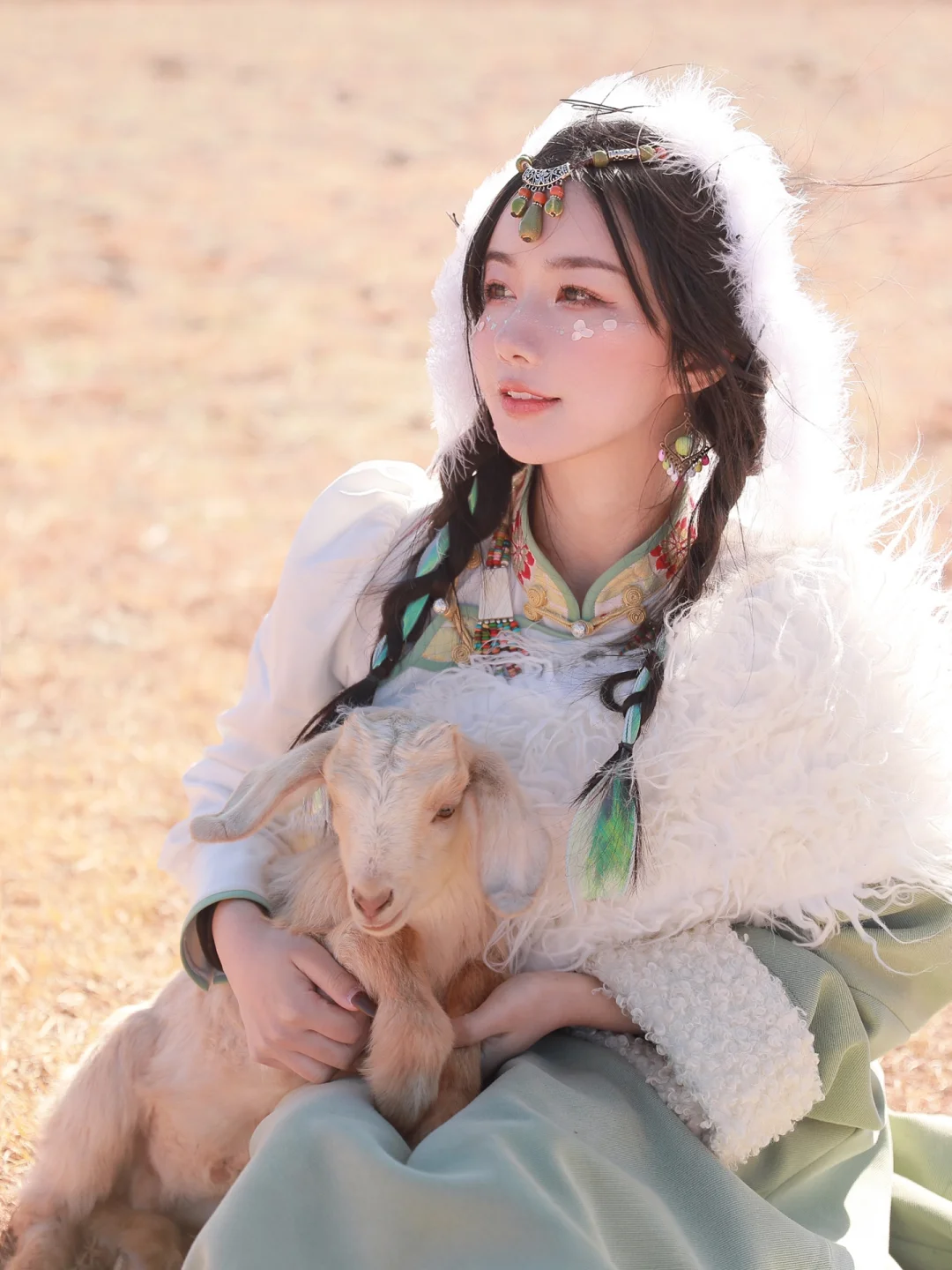 心心念念要拍的藏族写真终于实现了 跟工作室说希望有小羊、湖泊和雪山 于是被摄影师带到玉龙雪山下的一个很难找到大草坪 说这是他的秘密基地 这里有个放羊的老爷爷会收门票 大概50元拍一组 虽说是秘密基地 但还是看到陆续有人来拍写真和婚纱 - 不得不说这里的条件太艰苦了! 风大到头发和发饰乱飙 脸上嘴里全是沙子 ⚠️千万不要戴我头上的这个白毛条,头发也要扎紧不要留刘海,不然真的一直糊脸上很难出片 - 小羊真的太可爱太乖了 还会时不时亲我一下 咬手指也一点都不疼 好想一直抱着撸哈哈 - -