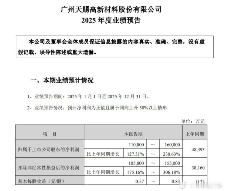 天赐,打响了锂电业绩行情的第一枪,接下来其他相关企业陆续披露,持续性不断被强化,难怪近期走的这么强包括天际和多氟多等。我们来分析天赐材料发布的2025年度业绩预告,并探讨其可能利好的产业链核心个股及其预期。业绩预告核心信息解读净利润预增:预计归属于上市公司股东的净利润为11亿元至16亿元,同比大幅增长127.31%至230.63%。业绩增长原因:公告明确指出,主要得益于新能源车市场需求持续增长以及储能市场需求快速提升,导致公司锂离子电池材料销量同比大幅增长。同时,公司自身的核心原材料产能爬坡和生产环节成本管控也有效提升了整体盈利能力。这份超预期的业绩预告,直接印证了锂电池材料产业链,特别是电解液环节的高景气度。利好传导路径与核心股分析天赐材料的强势表现,其利好会沿着产业链向上游和横向关联领域传导。以下是几个更具预期差的核心方向及相关个股:1. 电解液及核心原材料(最直接受益)天赐本身是电解液领域的绝对龙头,其业绩超预期首先强化了整个电解液赛道的景气度判断。天赐材料的业绩超预期,是电解液行业整体水涨船高的标志。这验证了电解液产品的量价齐升逻辑(销量增加、价格上涨),市场会预期同行业其他公司的业绩也将同步改善。同时,天赐材料强调的“核心原材料产能爬坡”指的是其六氟磷酸锂(LiPF6)等关键材料的自供能力,这凸显了一体化布局企业的成本优势。新宙邦直接受益:作为国内电解液行业的另一大巨头,新宙邦将直接分享行业高景气度的红利。天赐材料的订单饱满、产品供不应求,意味着下游客户也会向新宙邦等头部企业增加采购。优势:技术驱动型公司,在高性能、高附加值电解液配方上具有优势,客户结构优质(海外客户占比高),盈利能力相对稳定。上游核心原材料供应商(间接受益,但逻辑清晰)核心逻辑:电解液销量大增,必然带动其核心原材料的需求。这些公司是给天赐材料等电解液厂商“卖铲子”的,需求具有刚性。多氟多直接受益: 是全球六氟磷酸锂(LiPF6,电解液最关键成分)的龙头企业。即使天赐材料部分自供六氟,但行业需求爆发仍会推高六氟价格,并使多氟多这样的专业供应商订单充盈。优势:在六氟磷酸锂领域具有深厚的技术积累和成本优势。石大胜华直接受益:是全球领先的电解液溶剂供应商。溶剂是电解液的主要组成部分(约占80%质量),其需求与电解液产量直接挂钩。优势:在溶剂领域具有规模和产业链优势,是众多电解液企业的核心供应商。总结:直接受益路径图天赐材料业绩超预期 → 证实电解液行业高景气度 →1. 同业公司(新宙邦) 直接受益,市场预期其业绩同步向好。2. 上游材料商(多氟多、石大胜华) 需求被拉动,产品价格和销量有望提升。哪几个核心更有预期?从“预期差”(即市场尚未完全反映的潜力)的角度看:新宙邦的预期最为直接,市场会立刻将其与天赐材料进行对标。多氟多和石大的预期则取决于市场对原材料价格能否持续走强的判断。如果六氟磷酸锂或溶剂价格继续上涨,它们的业绩弹性可能会非常大。另外锂电设备环节预期差也很大,这是一个容易被忽视但逻辑坚实的环节。核心逻辑:天赐材料业绩大增的背后,是持续的产能扩张。要满足快速增长的销量必然需要新建生产线,或对现有产线进行技术改造升级。这将直接转化为对锂电生产设备的需求订单。先导智能:作为全球锂电设备龙头,为包括天赐材料在内的几乎所有主流电池和材料厂商提供设备。产业链扩产潮的最大受益者之一,订单能见度高,业绩确定性相对较强。杭可科技:专注于锂电池后道化成、分容检测系统,这是电池制造的关键环节。下游产能扩张同样会带动其设备的需求。