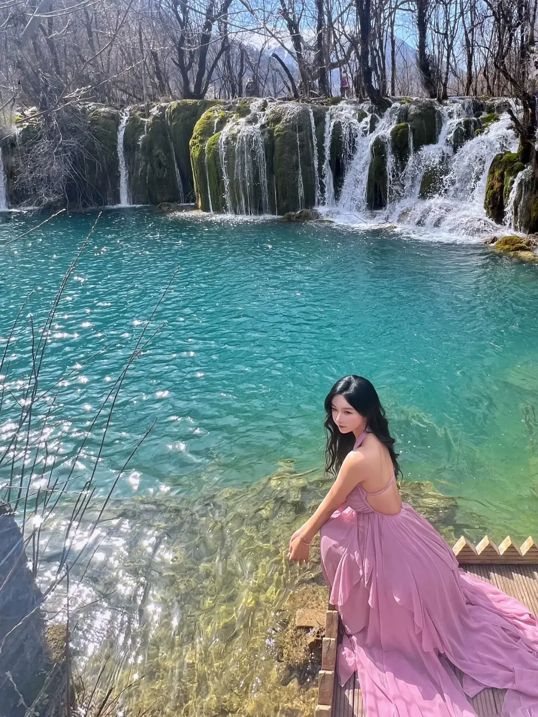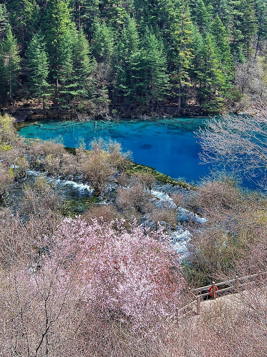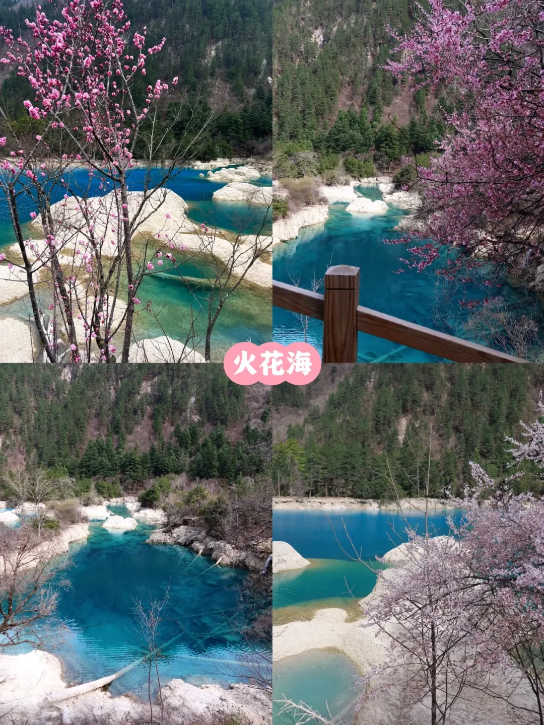 ⑤树正寨到火花海的路上一路樱花桃花超级美!一定要徒步观赏(拍照要15:30前到这,不然太阳就落山了)