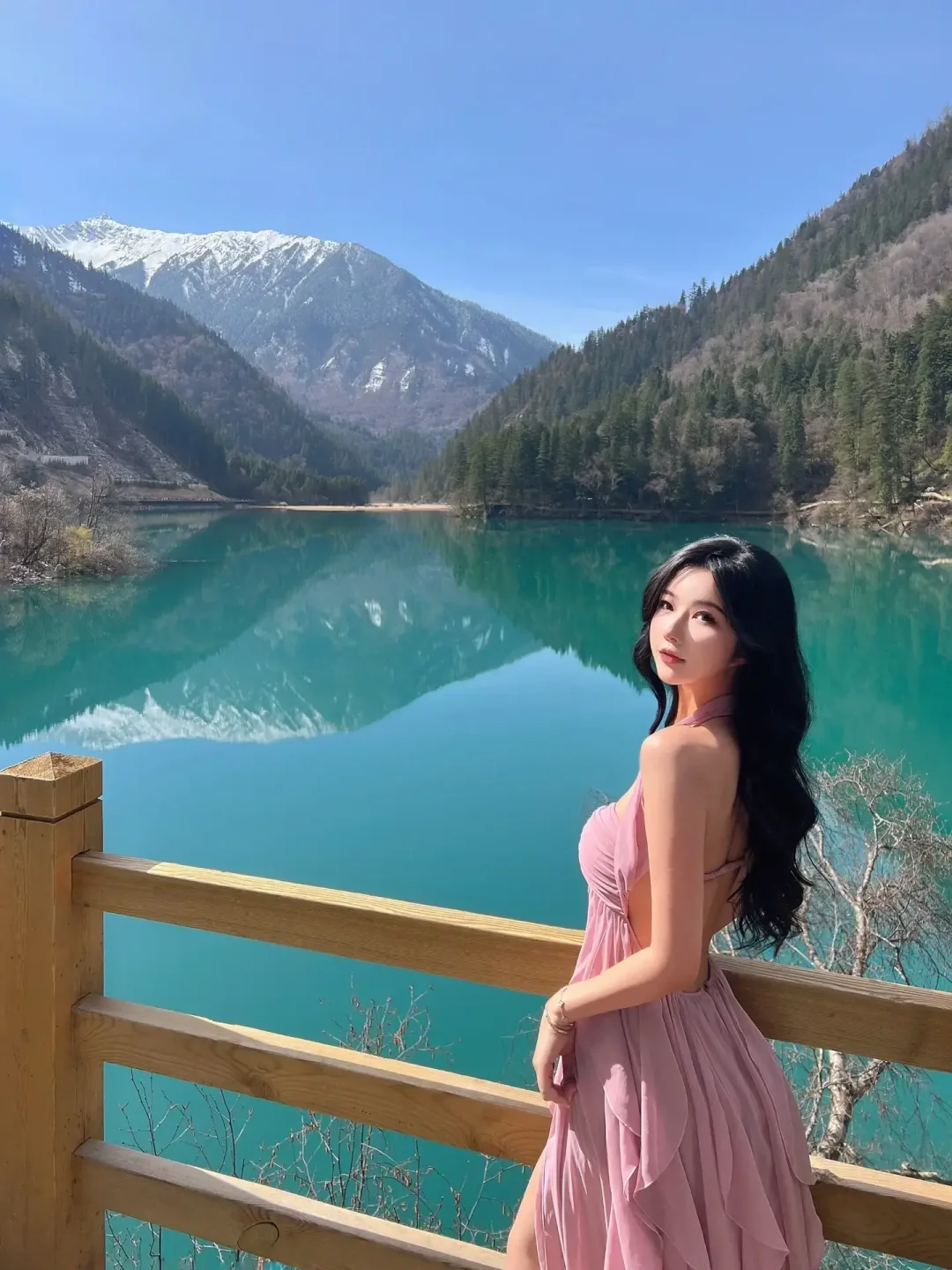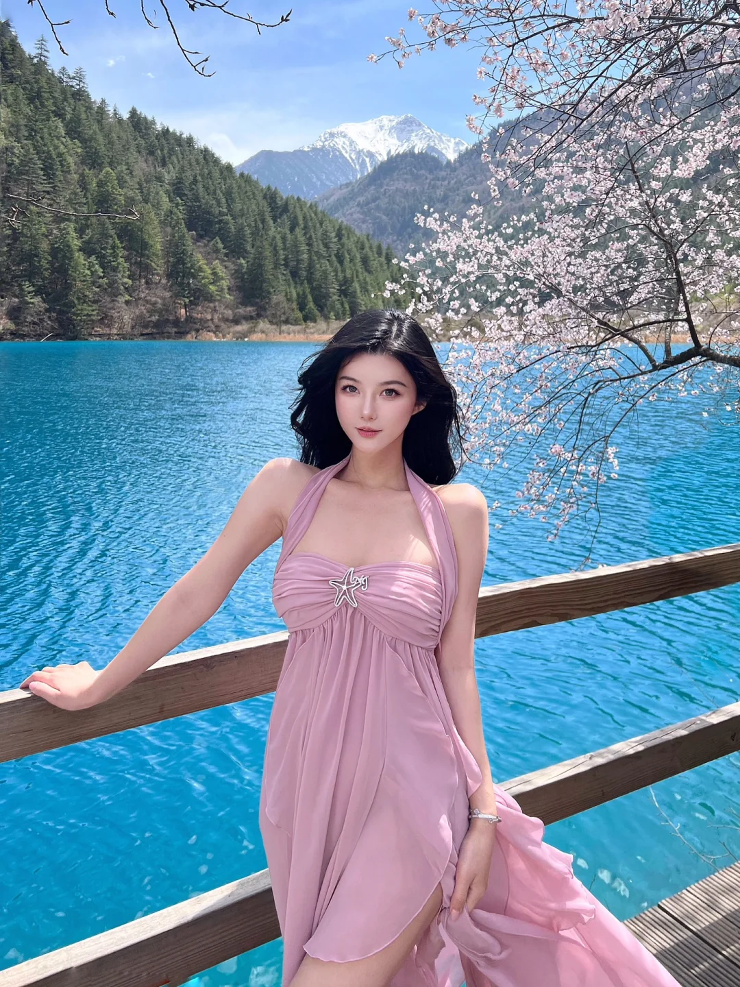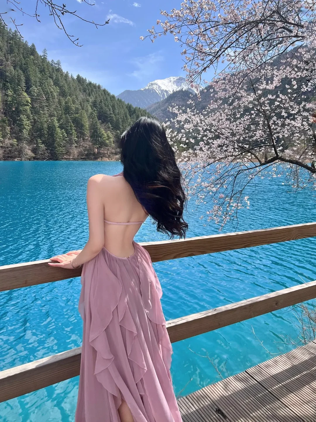 ④老虎海蓝宝石一样的颜色配上樱花树与远处的雪山遥相呼应,是这次zui爱的机位!