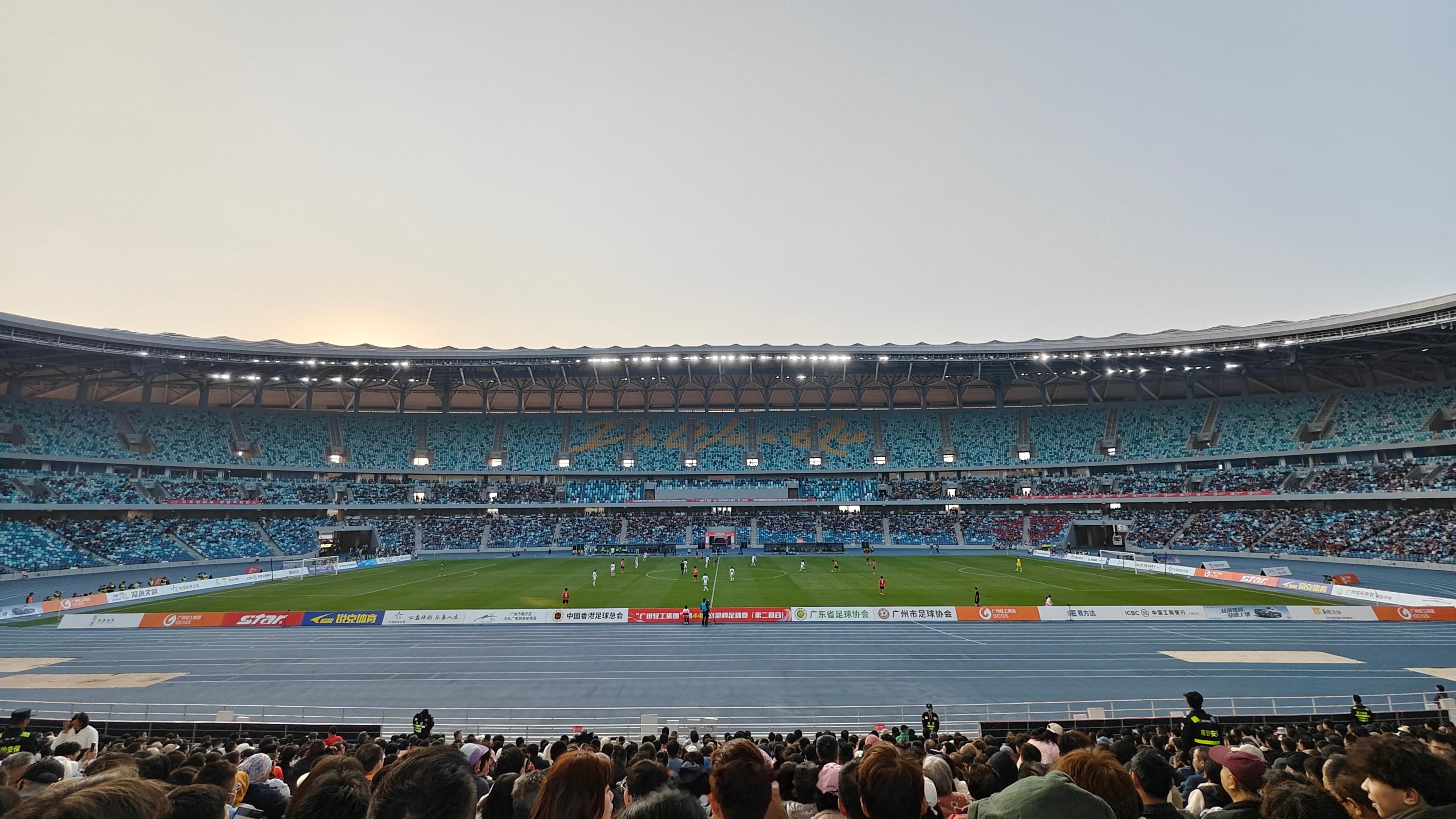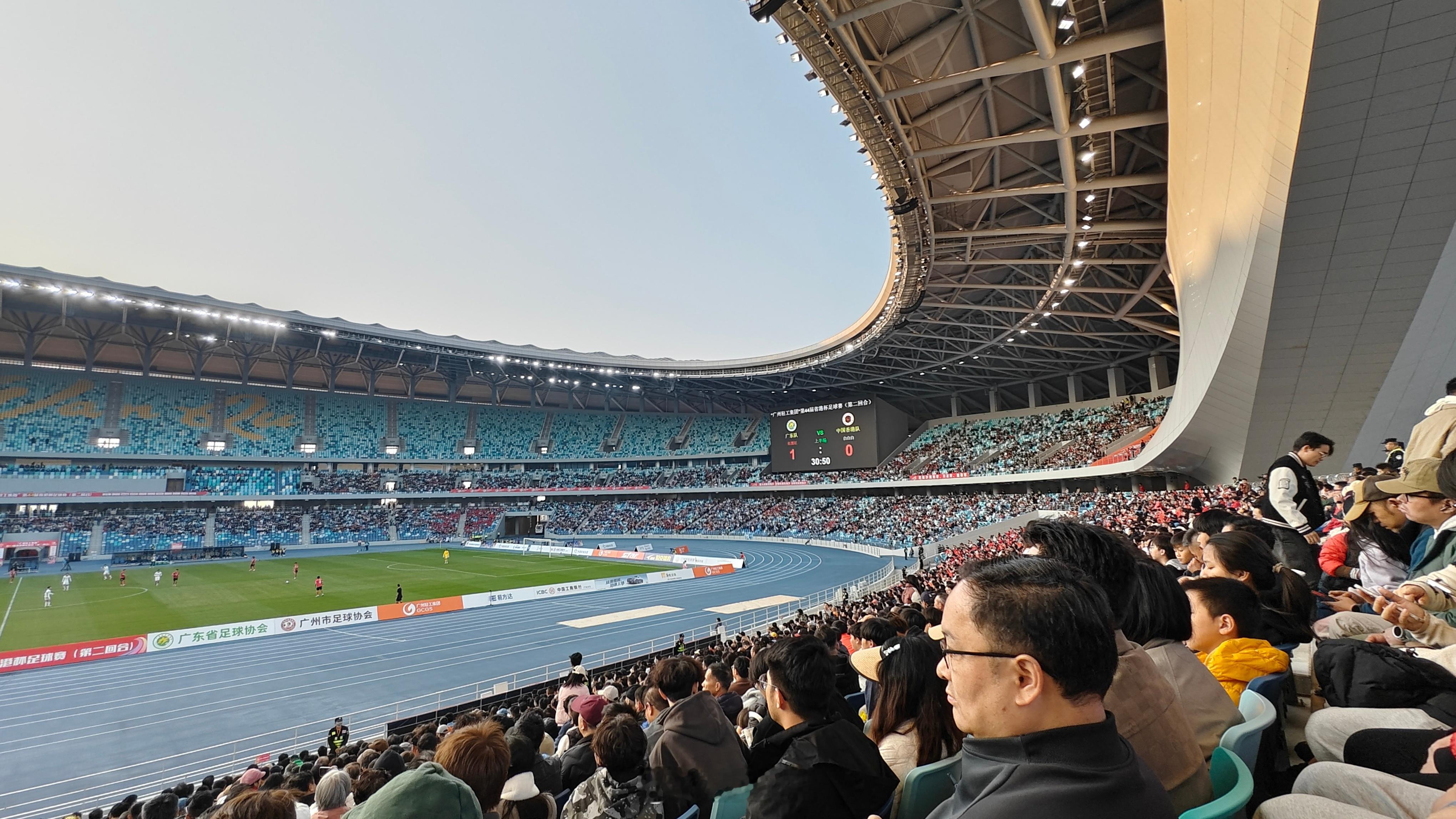 解锁新球场(其实之前来过,只是没进来),从天亮看到天黑 省港杯足球赛2026第44届省港杯省港杯广东队夺冠 广州·大湾区文化体育中心-体育场