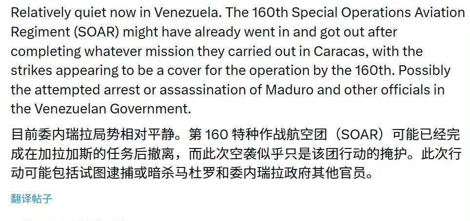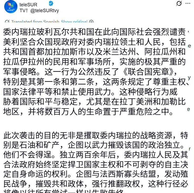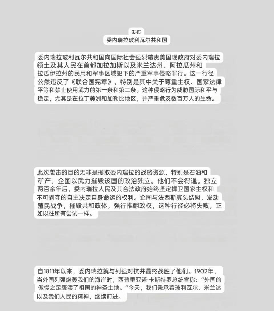 如何看待美军空袭&入侵委内瑞拉? 西班牙政府表示愿意“提供斡旋”,以和平谈判的方式解决委内瑞拉当前的危机。 美国政府称将在美国审判马杜罗 ……………………………… 委内瑞拉政府就遭美国军事侵略向国际社会发表官方声明: 【美军对委内瑞拉境内目标轰炸结束 地点包括军用机场等】当地时间1月3日,总台记者获悉,在委内瑞拉加拉加斯的消息人士称,美军对委内瑞拉境内的本轮轰炸目前已经结束,持续约一小时。轰炸地点包括委军用机场、国防部、港口等目标。(央视新闻) ………………………… 如题,北京时间15:00左右消息显示美军空突委内瑞拉首都。 据CBS记者刚刚消息: 特朗普下令对委内瑞拉境内目标发动空袭,包括军事设施 委内瑞拉总统尼古拉斯·马杜罗宣布进入紧急状态,呼吁民众动员起来“击败帝国主义侵略”。委内瑞拉国家电视台发布通告,呼吁抵抗美帝国主义侵略,不要投降。 哥伦比亚总统佩特罗发文 更新:几天前,特朗普授权对委内瑞拉进行空袭和地面打击。军事策划者最初考虑在12月25日圣诞节当天发起行动,但由于美国在尼日利亚同时展开空袭而推迟,之后又因不利的气象条件再次推迟 ------------------------------------ 懂王宣布抓获委内瑞拉总统马杜罗? 3小时? 如果是真的。 不得不说,美军实战确实无人可比。 别总想着给对岸洗地了。 给你1天要是把赖桑抓回来。 蛙蛙肯定传檄而定。