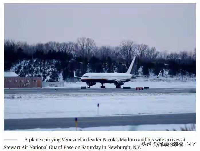 马杜罗被押送到美国纽约,他乘坐的飞机降落纽约一机场,现场画面显示,数十名美国缉毒