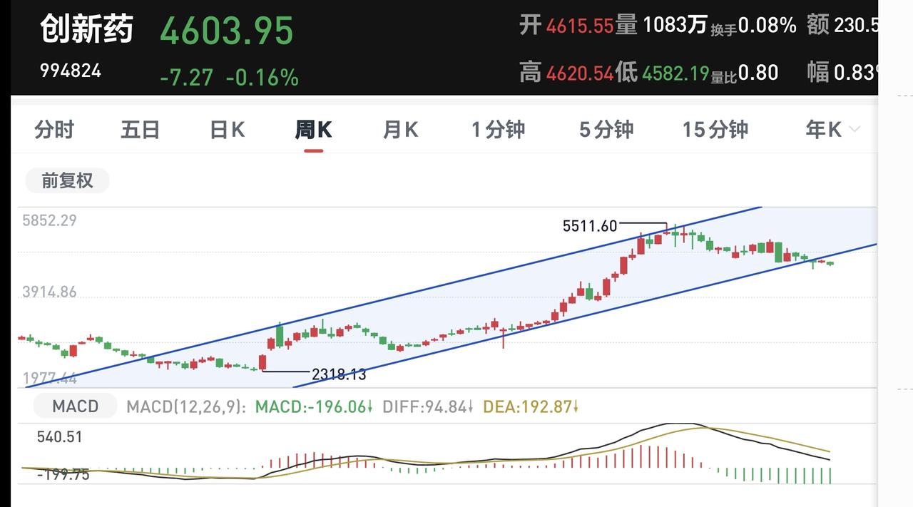 基金:创新药板块哪些人可以进场,哪些人不可以进场 创新药板块的调整已经进行了几个月,许多人对这个板块是深恶痛绝,许多人现在又被这个板块套住了,你要知道的是,板块去年全年上涨了53.64%,这样的上涨幅度能够套住人,我不知道这个问题是出在市场身上,是出在板块身上,还是出在哪个方面。 这个板块加仓排行榜见下面的截图2,持有人数排行榜见下面的截图3,排名第一的都是永赢医药创新智选混合。 我们来看一下下面的截图4,这是创新药板块K线图,从图中可以看出,我画了两条倾斜向下的斜线,这是创新药板块日线级别下跌通道,现在的位置处于这个下跌通道中,也就是说,创新药板块日线级别处于下跌趋势中。 我们来看一下下面的截图5,这是创新药板块周K线图,从图中可以看出,我画了两条倾斜向上的斜线,这是创新药板块周线级别上涨通道,前段时间已经跌破了这个上涨通道的下轨,也就是说,创新药板块周线级别处于上涨趋势部位中。 创新药板块日线级别处于下跌趋势中,周线级别的上涨趋势已经被破坏,所以说,想新进场这个板块需要等待,但捞回筹码的人,只要与止盈位置有足够的空间,就随时随地可以捞回止盈的筹码。 新进场的人,挣的是以后上涨的钱,捞回止盈筹码的人,是挣的与止盈位置之间的空间利润,所以,进场的目的不一样,能否进场也是不一样的。 我每天都会分享我的观点,我的观点只代表我个人的看法,不能作为你操作的依据,据此操作后果自负。