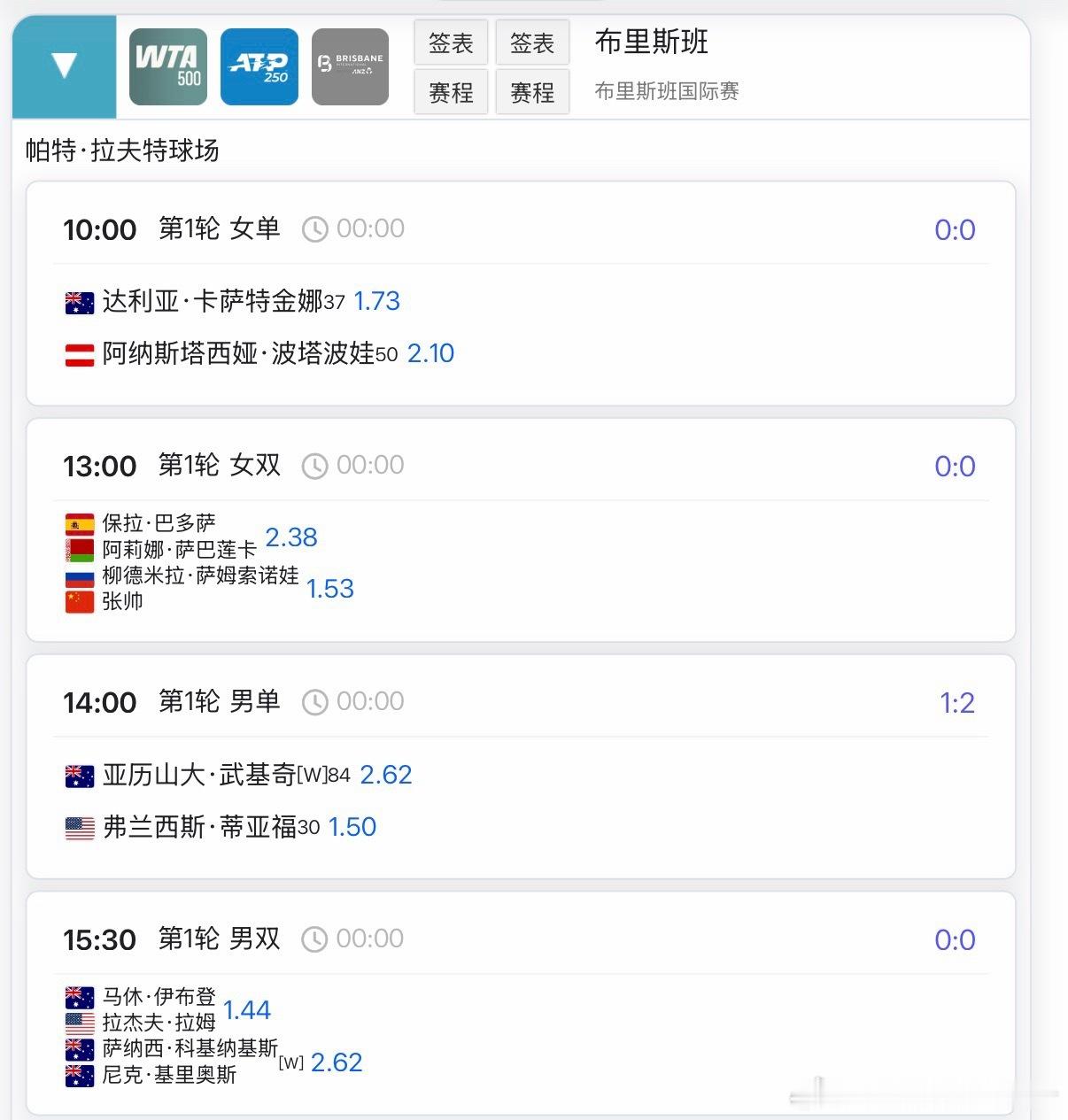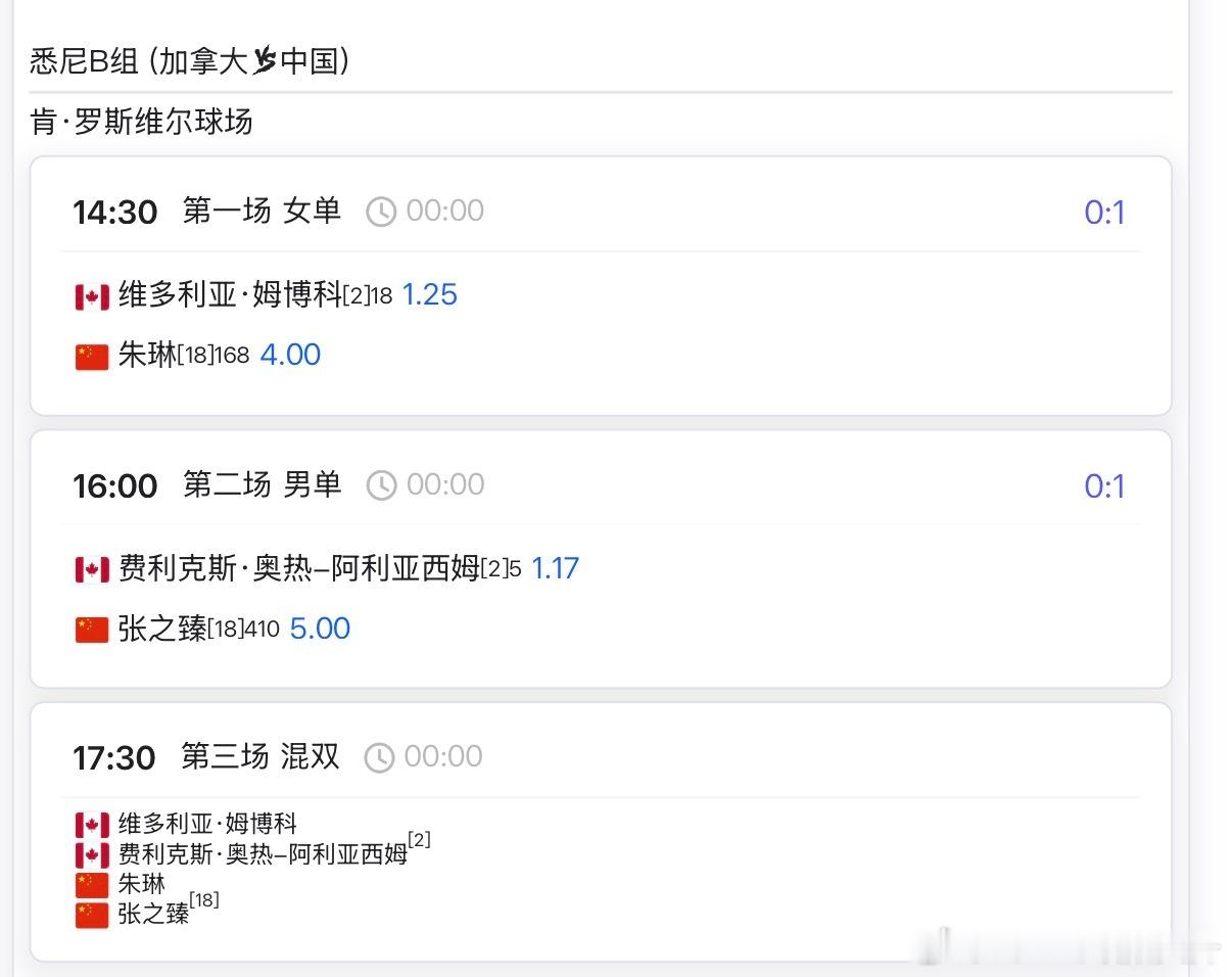 网球2026赛季 🚨1月4日焦点赛程🔵联合杯小组赛 🇨🇳中国队vs🇨🇦加拿大队14:00朱琳vs 姆博科随后 张之臻 vs 阿利亚西姆随后 朱琳/张之臻 vs 姆博科/阿利亚西姆🔵WTA500布里斯班女双首轮13:00 🇨🇳张帅/萨姆索诺娃vs萨巴伦卡/巴多萨14:00 🇨🇳蒋欣玗/詹皓晴 vs 亚历山德罗娃/安德列娃🔵ATP250香港资格赛首轮12:00 🇨🇳周意 vs 马埃斯特雷利15:00 🇨🇳布云朝克特 vs 巴萨瓦雷迪中国网球