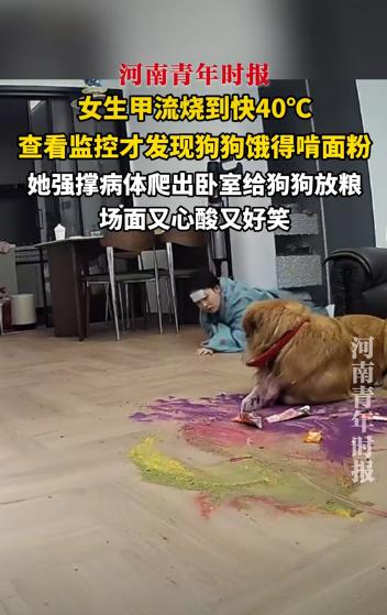 笑不活!安徽一女生甲流烧到快40度,在床上躺了一天,发现家里狗狗异常安静,查看监控后,才发现狗狗饿得啃面粉,她强撑病体,爬出卧室,给狗狗放狗粮,放完后就直接趴在地板上了,场面又心酸又好笑,女生事后坦言:身为老母亲的我...... 事情的起因是杨女士(化名)在几天前的时候被确诊为甲流,高烧来得又猛又急,体温一路飙到将近40度,人像被抽空了力气,头重得抬不起来,喉咙干得发疼,连下床倒杯水都成了奢侈,她索性裹着被子,在卧室里躺了一整天,手机响了几次也懒得看,只盼着能熬到退烧。 直到傍晚,屋里安静得有点反常,平时一到饭点就跑来扒门、转圈、哼哼唧唧的狗狗,这天却一点动静都没有,杨女士心里“咯噔”一下,强撑着拿起手机,点开客厅的监控。 画面里,狗狗趴在地上,对着一个敞开的面粉袋子,小心翼翼地啃着,它显然不太明白这东西能不能吃,啃几口又停下来看看四周,最后还是饿得不行,继续低头咬。 那一刻,她才想起,从早上病倒后,就再没给狗狗添过狗粮,平时再忙再累,这件事都没落下过,可这一天,高烧把所有的日常都烧没了。 她掀开被子,脚一落地,整个人就发虚,于是杨女士趴在地上匍匐前进给狗子到了一大碗狗粮,这时候狗狗闻到熟悉的味道,立刻凑了过来,尾巴摇得飞快,顾不上地上的面粉,埋头吃得认真。 杨女士看着它吃,心里的那口气一松,后来视频发到网上后,评论区很快热闹起来,有人说“笑着笑着就酸了”,还有一些人在下面调侃评论说,生病了还不忘照顾自己家的毛孩子,可见杨女士心得多善良。 看似好笑,其实挺扎心,生活里,很多责任都是在身体最脆弱的时候,才显得格外沉重,杨女士后来也说,那天趴在地板上,心里只有一个念头,幸好,她还是爬出来了。