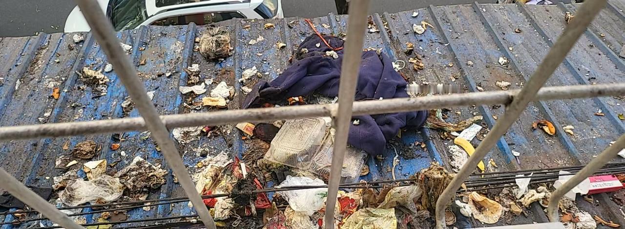 一美女业主找到我们倾诉烦恼,她家楼上经常像下雨般往下落垃圾,导致窗台都成了垃圾场,恶心之极 特别是夏天,蚊子虫子猛生,还臭气熏天,如今快过年了,实在受不了,尤其家里才装修好,屋内与屋外形成鲜明的对比 什么摖屁股的纸,吃饭的饭盒,还有破旧衣物,以及吐的浓痰等…… 记得以前她也有投诉过,那时我就到楼上敲门,开门的是个爹爹,屋里一股难闻的味道从门内飘出来,我说什么爹爹都点头说好,但之后还是一如既往地往下丢垃圾 后来才知道他脑子已经坏了,也认不得人,更管不住自己,无奈只好联系他女儿,他女儿也表示没有办法,说她只能尽自己能力偶尔来叫人搞一下屋里卫生 我们说让她请个保姆,她说她爸爸连她都不让进屋,更何况是生人,她每回来搞卫生都是趁两老的不在才弄 如此一来,我们只能让保安师傅晚上等下面商铺关门了,拿长扫把在美女家推下去,但管不了多久,又堆满了[捂脸]