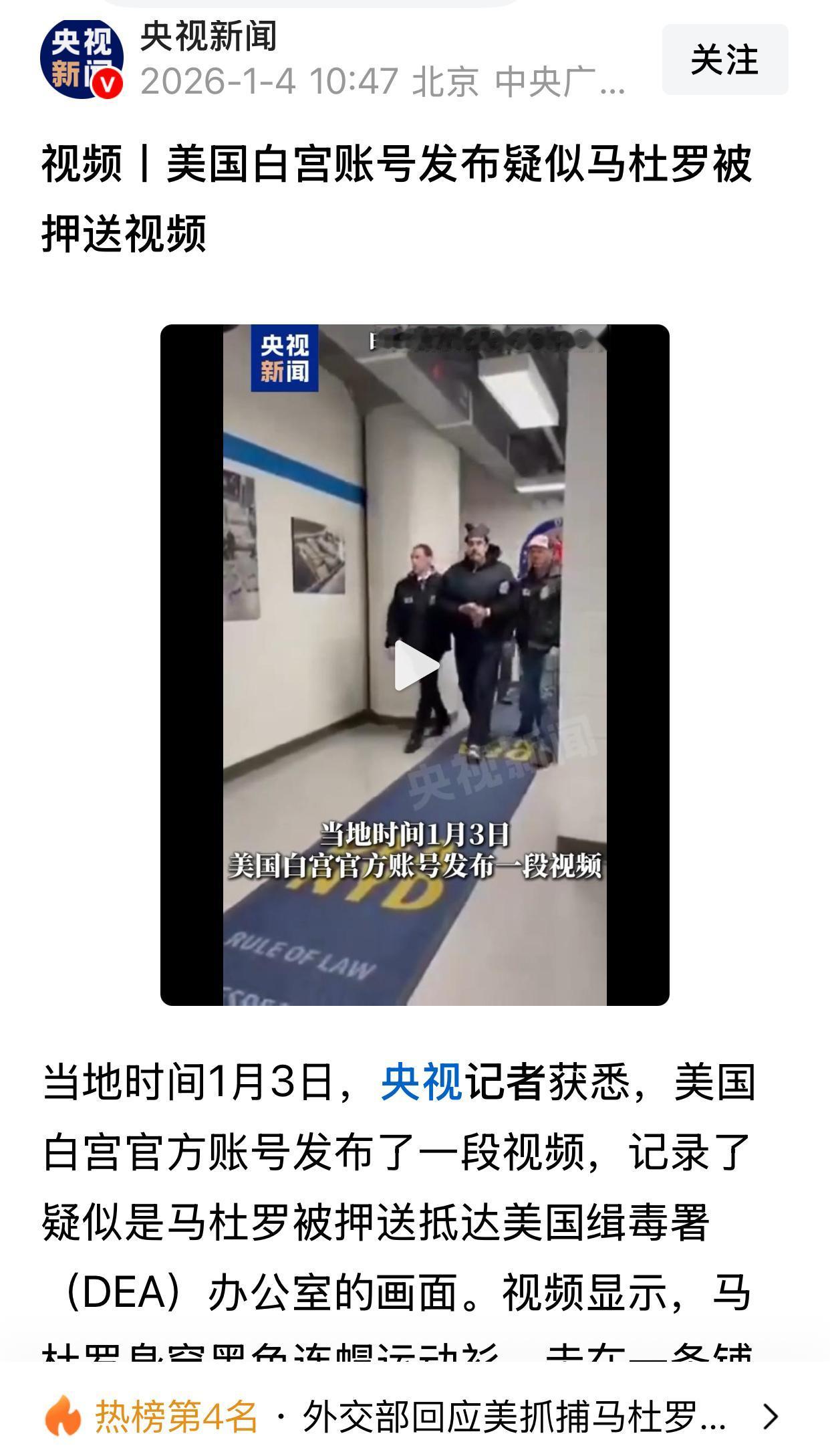 马杜罗确实是有里有面,临危不惧,被押解的路上,还在祝别人新年快乐,晚安。