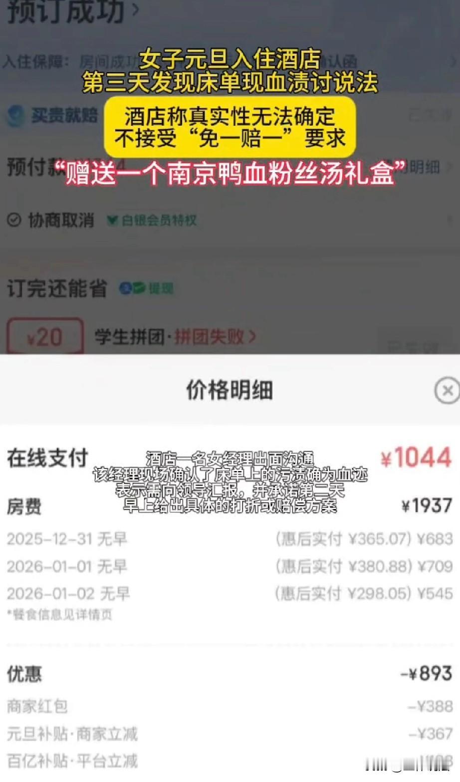 江苏南京,女子和丈夫出门旅游,花1044元订了三天酒店,谁知,住到最后一晚时,她