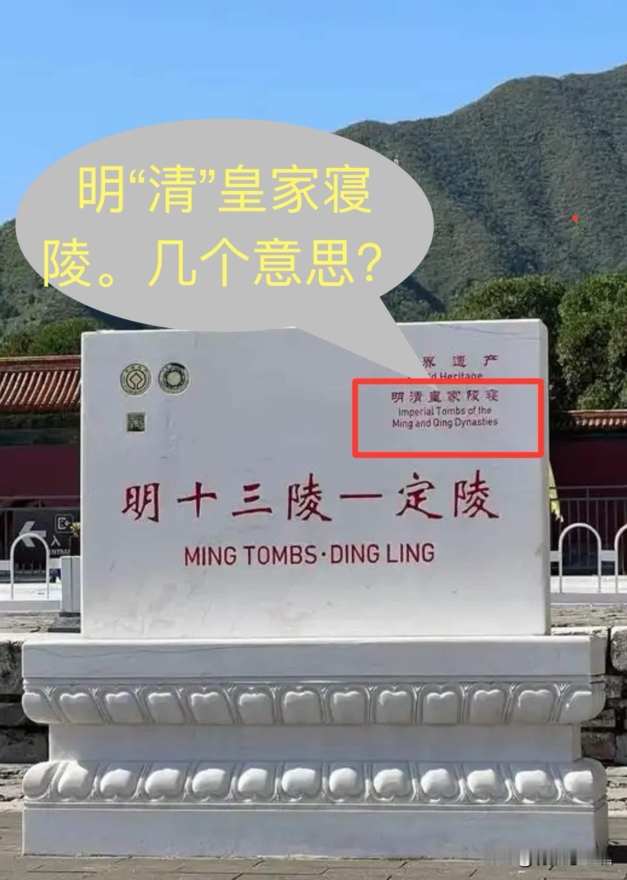 清东陵为何没有“明”? 前几天写了一篇小文《什么时候冒出来的明清陵》,一些人在下面反驳,说什么这是当初把明清陵一起申报的世界遗产项目,所以叫“明清寝陵”,不要大惊小怪。 似乎说的大义凛然、好不铿锵有力,似乎他们最聪明了,明清一家亲嘛。 好,既然你们这么公正,这么正义,请问,你们把明代帝陵加上“清”,那么想必在河北的“清东陵”也一定加了“明”吧,否则怎么能体现你们所说的这是“明清世界文化遗产”呢。 于是我去找清东陵的图片,我搜遍了网路,为什么看不到一个清帝陵的碑上有一个“明”字呢?你们的正义呢? 在“明帝陵”上加上“清”,在“清帝陵”上只写“世界文化遗产”,这种歪心思你以为我们看不出来? ——————————