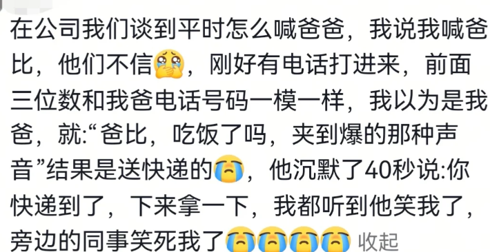 我以为是我爸,就:爸比,吃饭了吗,夹到爆的那种声音"结果是送快递的