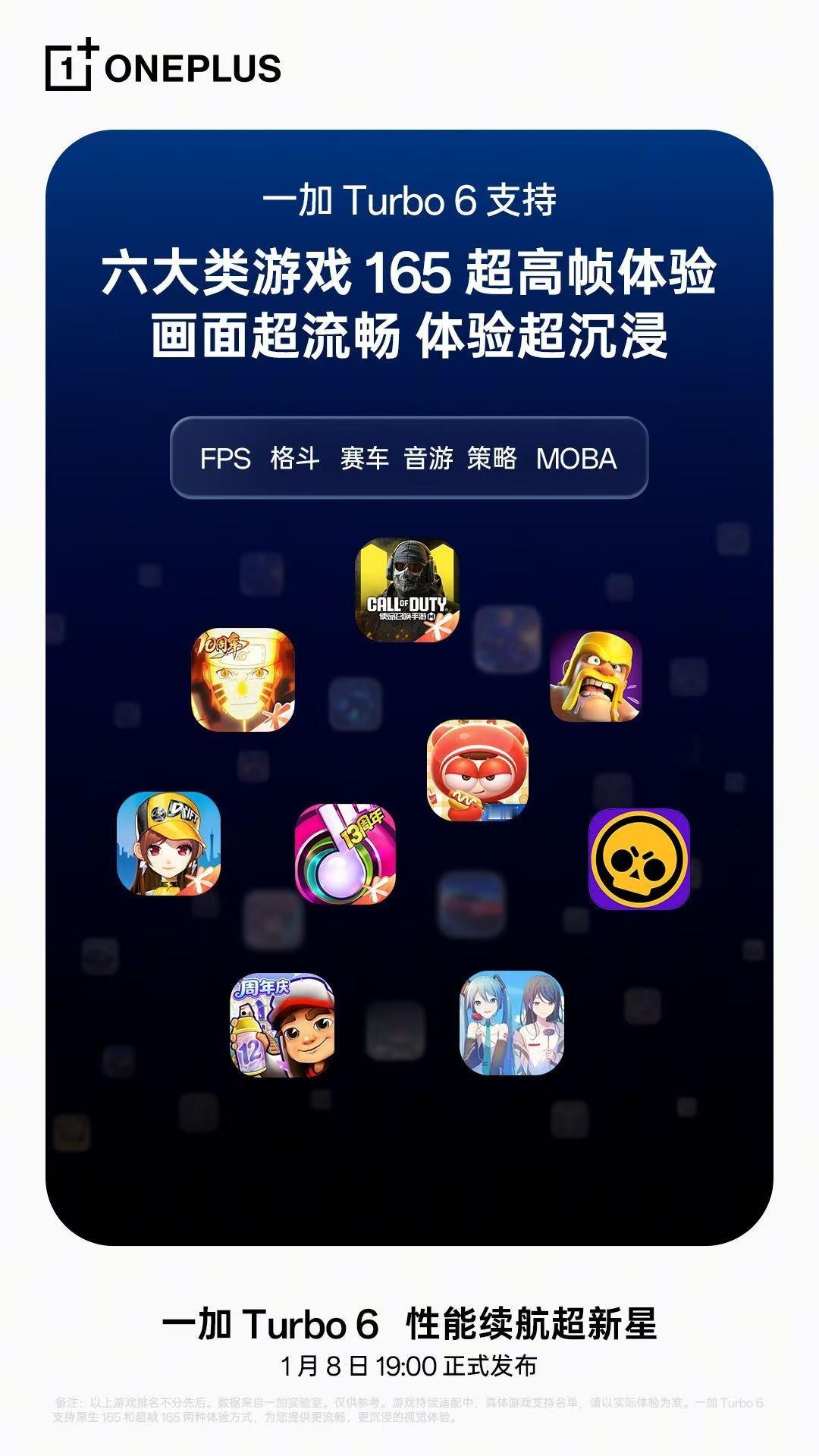 大哥们有的,我也有之:三大游戏黑科技全加持。一加Turbo 6也给到了冰河散热系统、旗舰级六轴陀螺仪,165 超高帧体验。《火影忍者》《QQ 飞车》《节奏大师》《使命召唤》等游戏都失陪了165的超高帧,更细腻,更畅爽。还有大电池,续航更持久。8号见!