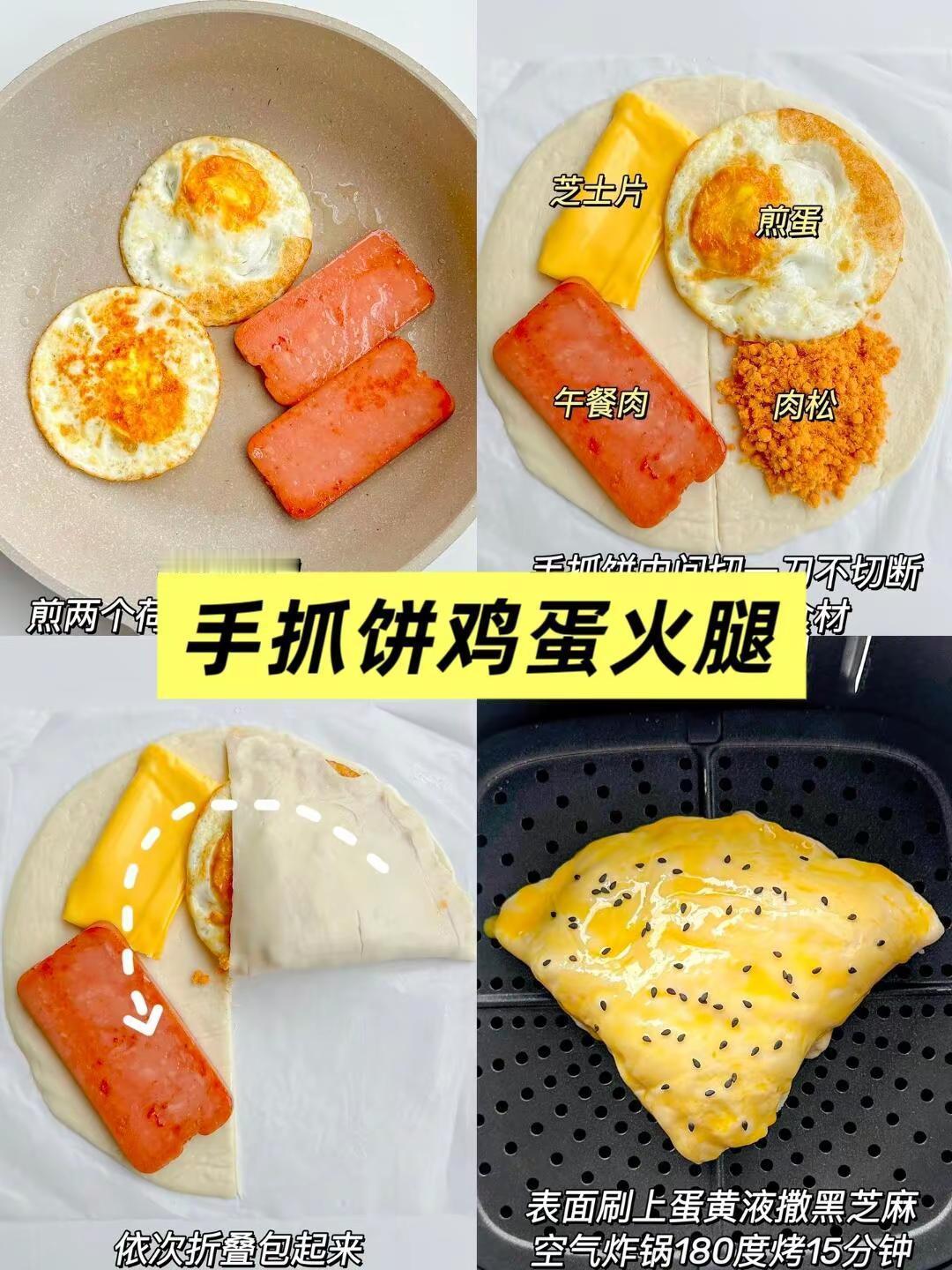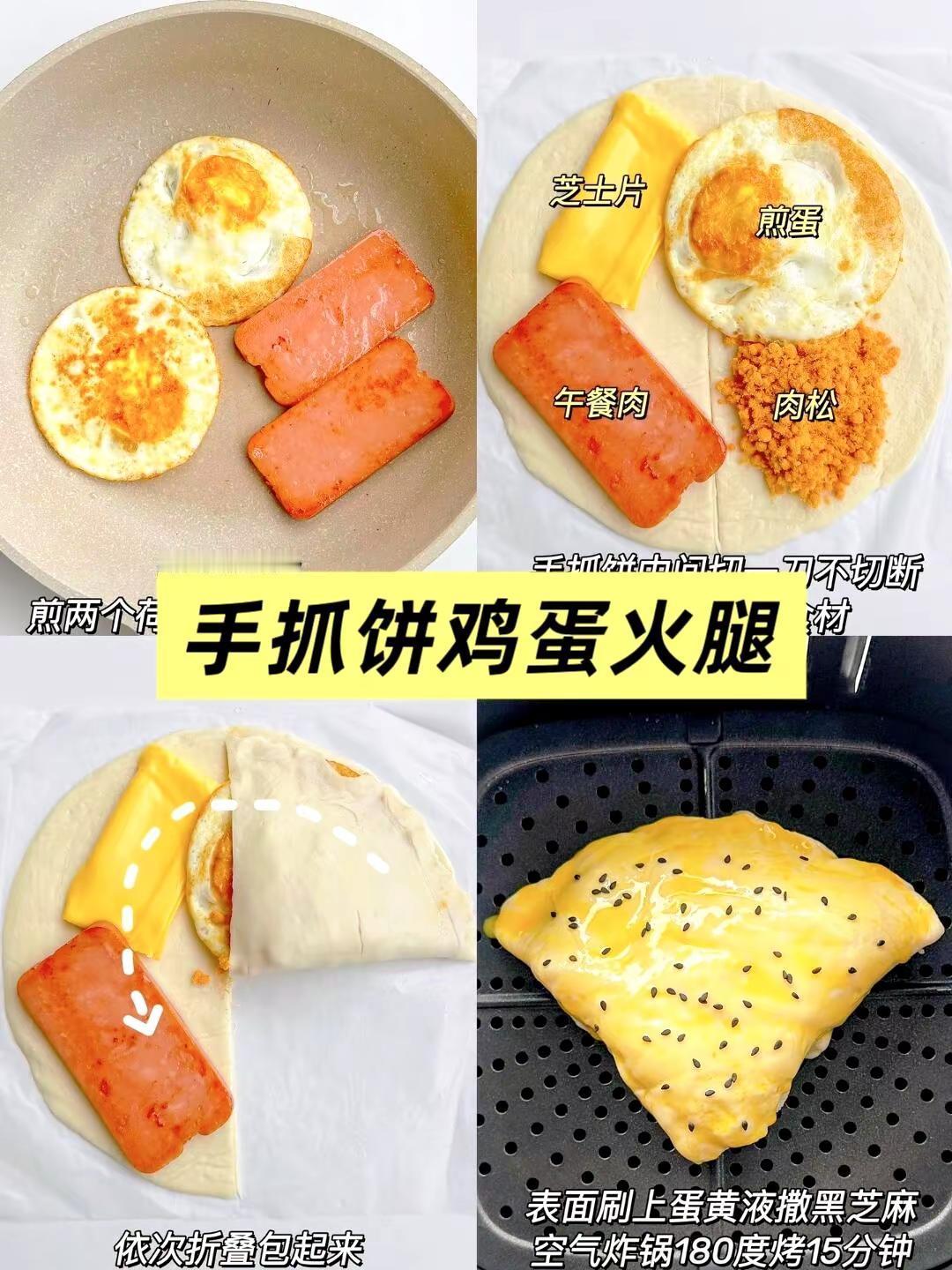 手抓饼逆天吃法!懒人早餐一周不重样✨ 。创作者中心 创作灵感 谁懂啊‼️一张手抓饼居然能玩出这么多花样😱 打工人早起5分钟就能get路边摊同款快乐🍳 空气炸锅叮一下👉酥到掉渣的芝士爆浆饼🧀️ 卷根火腿就是豪华版可颂🌭️ 撒点白糖秒变童年记忆里的蝴蝶酥🦋 全家抢着吃的样子真的治愈到爆💖 ✨生活嘛 就是把简单的食材吃出高级感