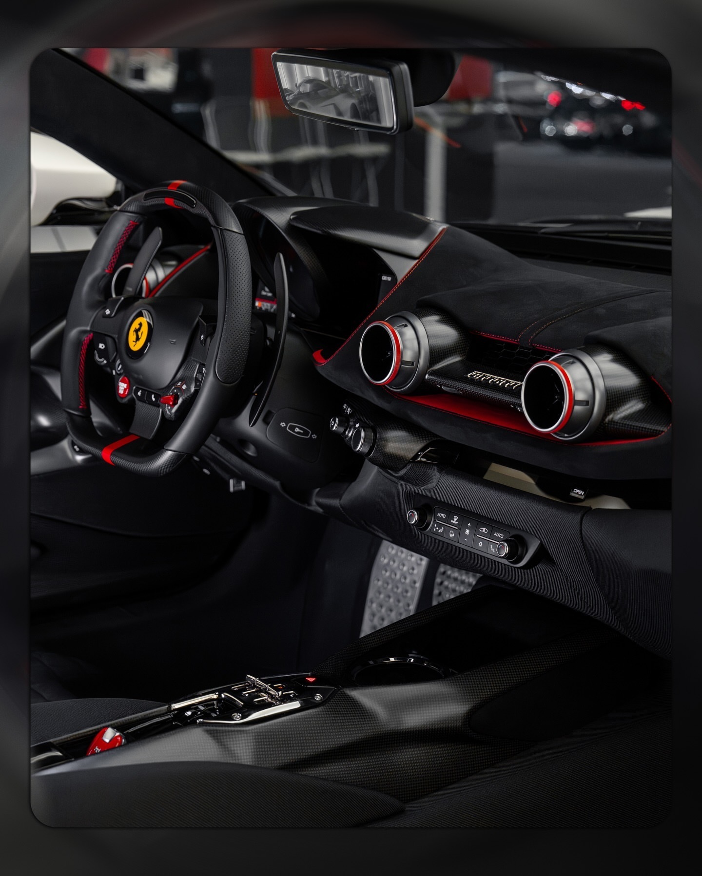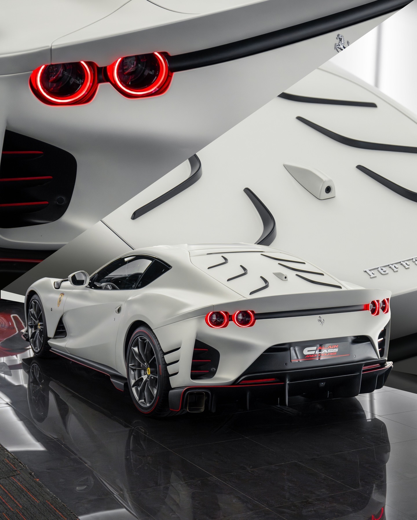 Car时尚 法拉利812 Competizione沉浸在意大利白与哑光罗斯科萨红色的点缀中,812 Competizione的每一道曲线都是为了速度而雕琢,从碳纤维扩散器到在光线下闪耀的锻造轮毂。车内,采用黑色alcantara材质与红色特殊缝线包裹,带来精确的触感,宽敞的赛车座椅暗示着这款V12猛兽的能力。更轻、更锐利,直至最后9,500转的转速都充满活力,这是法拉利的终极前置V12——一条为街道而生的赛道怪兽。法拉利812老纪侃车豪车超跑