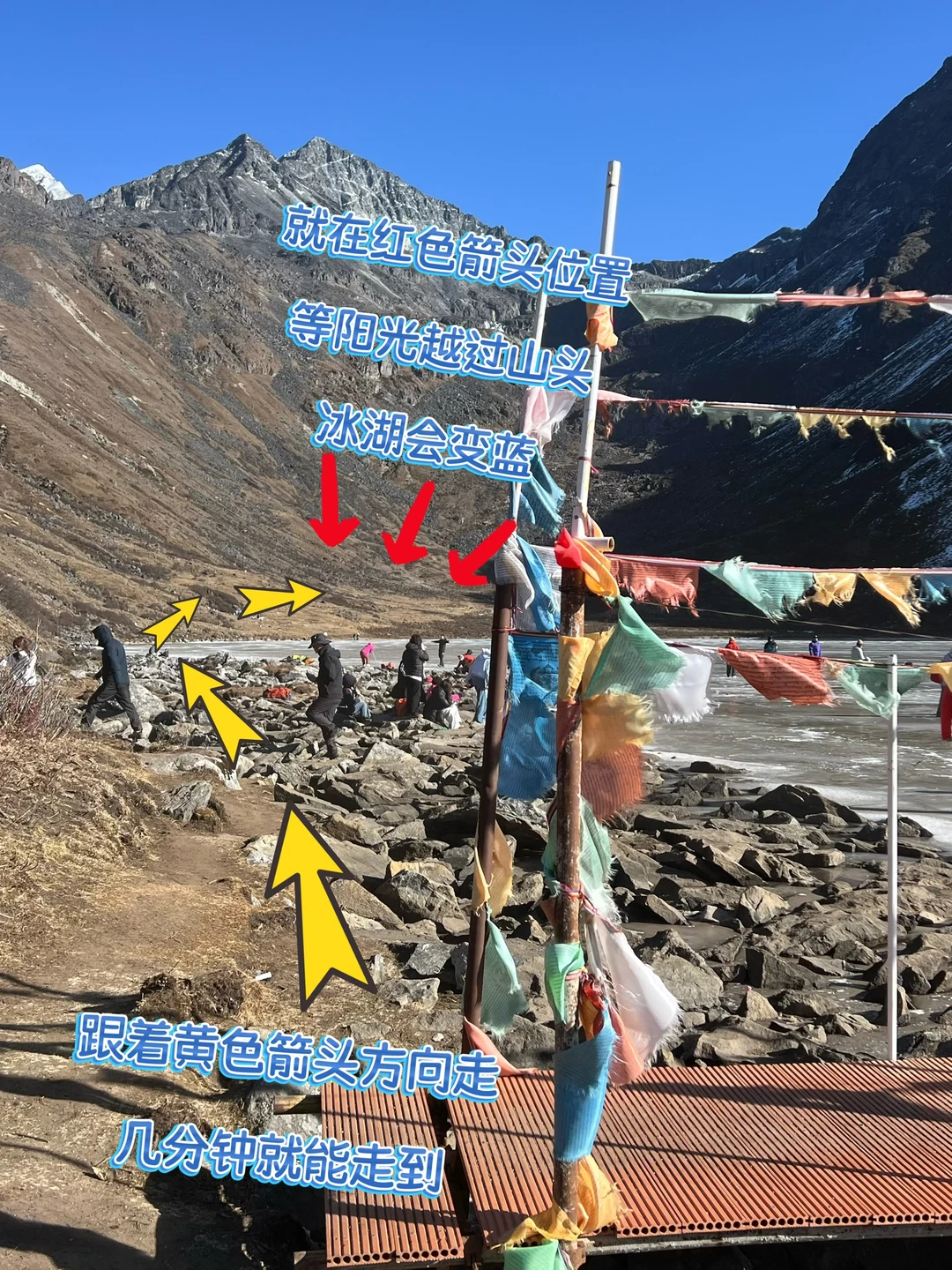 7,9:30到达湖边,这算是走得慢的了。先去小卖部,就是那个当地人搭建的帐篷里坐一会,烤下火,里面有泡面,炸土豆,香飘飘卖。没吃早饭的,去吃点东西,你自己带了吃的也行,总之先补给下。现在出去也看不了什么
