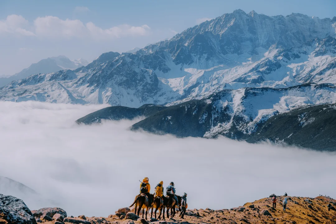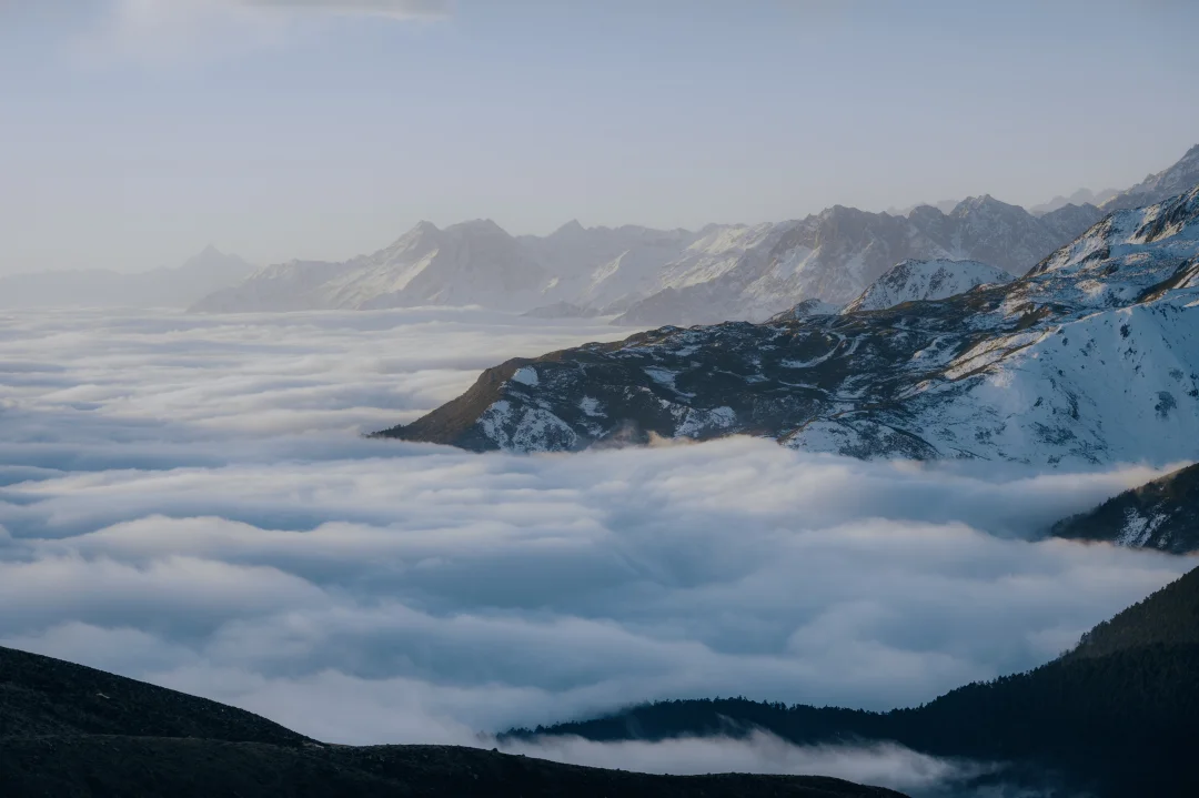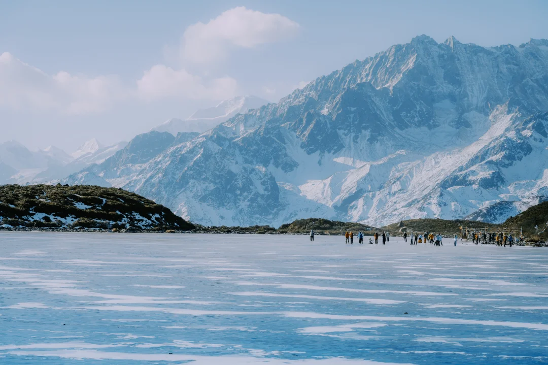 10,虽然它不像西藏某些冰川湖,蓝得那么纯粹,但配上湖对岸的雪山,在成都这么近的距离下,能看到这个风景,超级香。如果没太阳咋办……那就?别爬野马海子直接回家吧