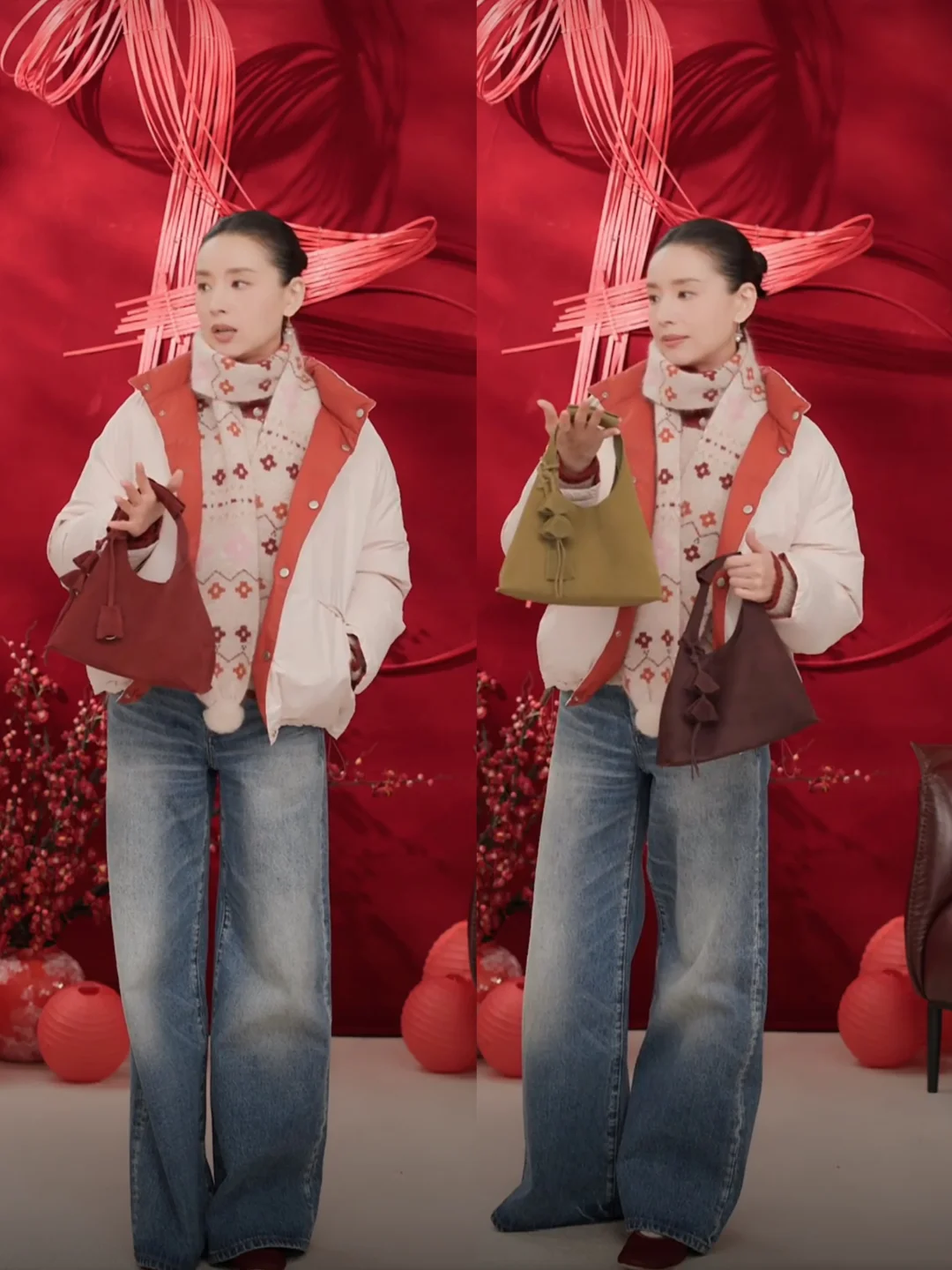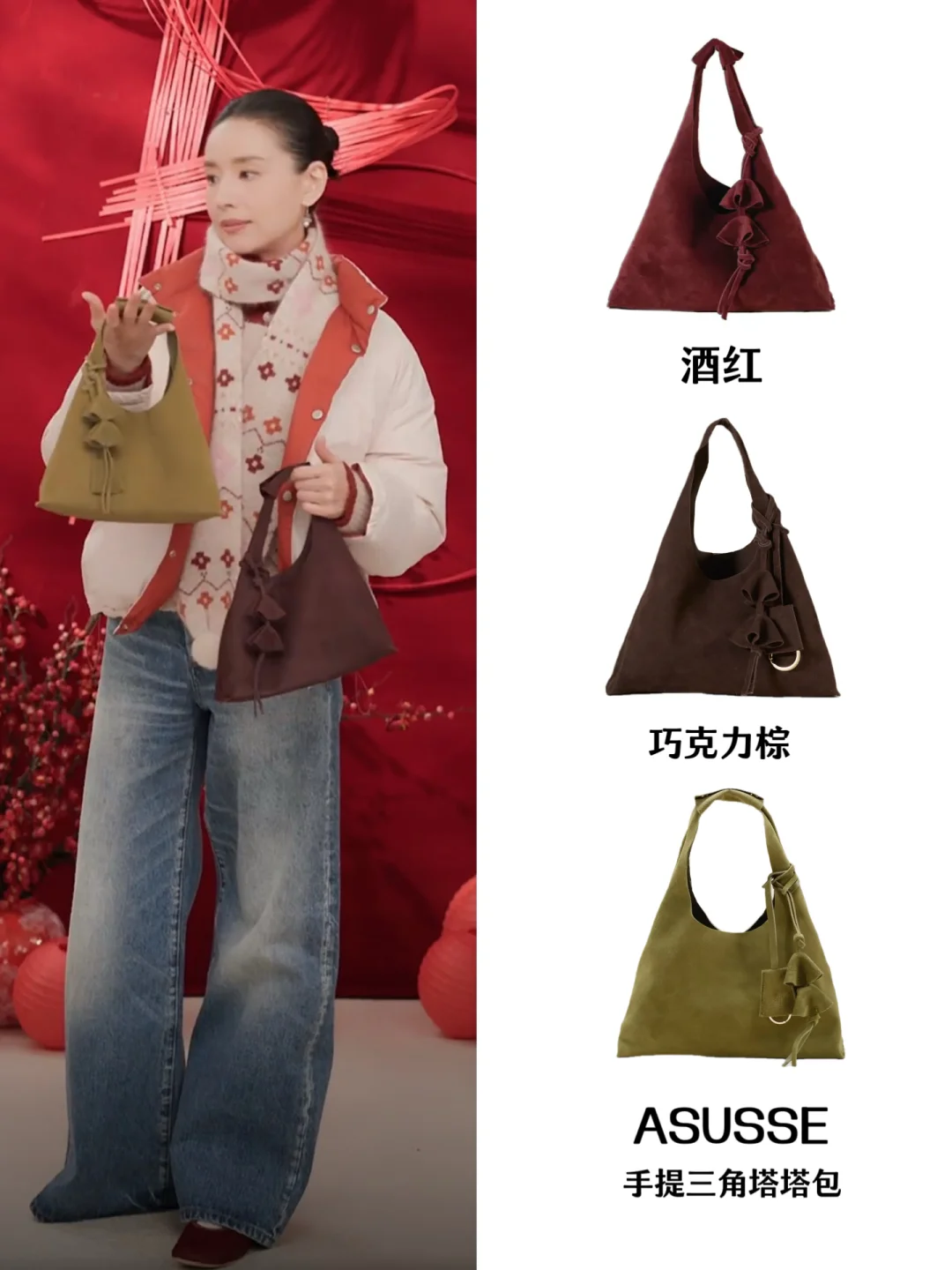 董洁直播中好多新年新款呀,每一套都很想拥有,温暖又时尚! 物色到直播间这款塔塔包,小巧但是容量大,精致且百搭,又被种草上了!