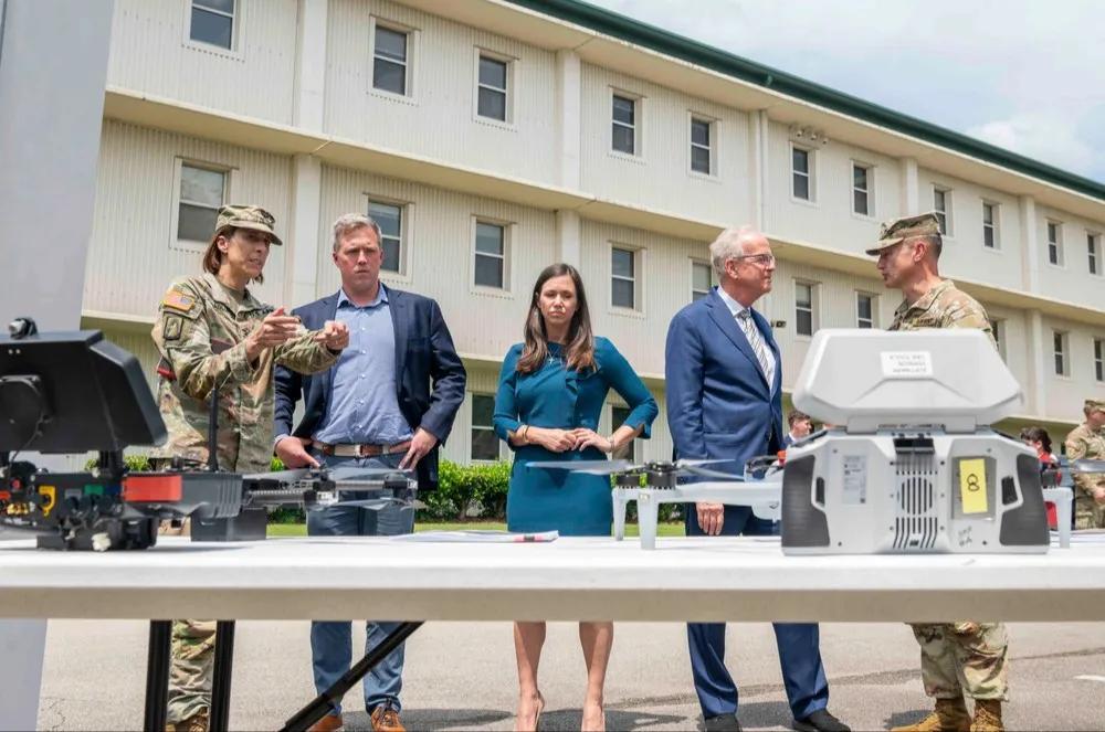 美军加大力度研发先进反无人机技术。 美军陆军部长丹·德里斯科尔、美国参议员凯蒂·布里特和参议员杰瑞·莫兰在2025年5月19日访问阿拉巴马州红石兵工厂期间,接受航空项目执行办公室士兵的简报。PEO航空负责人向德里斯科尔部长简报了反无人机能力。