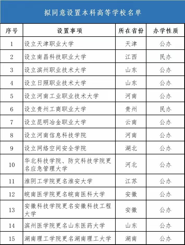 恭喜小兄弟淮安!教育部拟同意设置15所本科高校已公示,山东成大赢家,有3所高校在列,安徽也不错,2所上榜。淮阴工学院更名为淮安大学,也在这份名单之中。然而,常州信息职业技术大学、徐州建筑职业技术大学却未出现在名单里,看来学院想要更换为大学的牌子,还得再等等。 江苏 山东 安徽