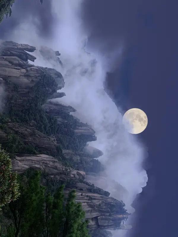 峰衔落日吞霞色,请下联云抱孤川揽月痕。