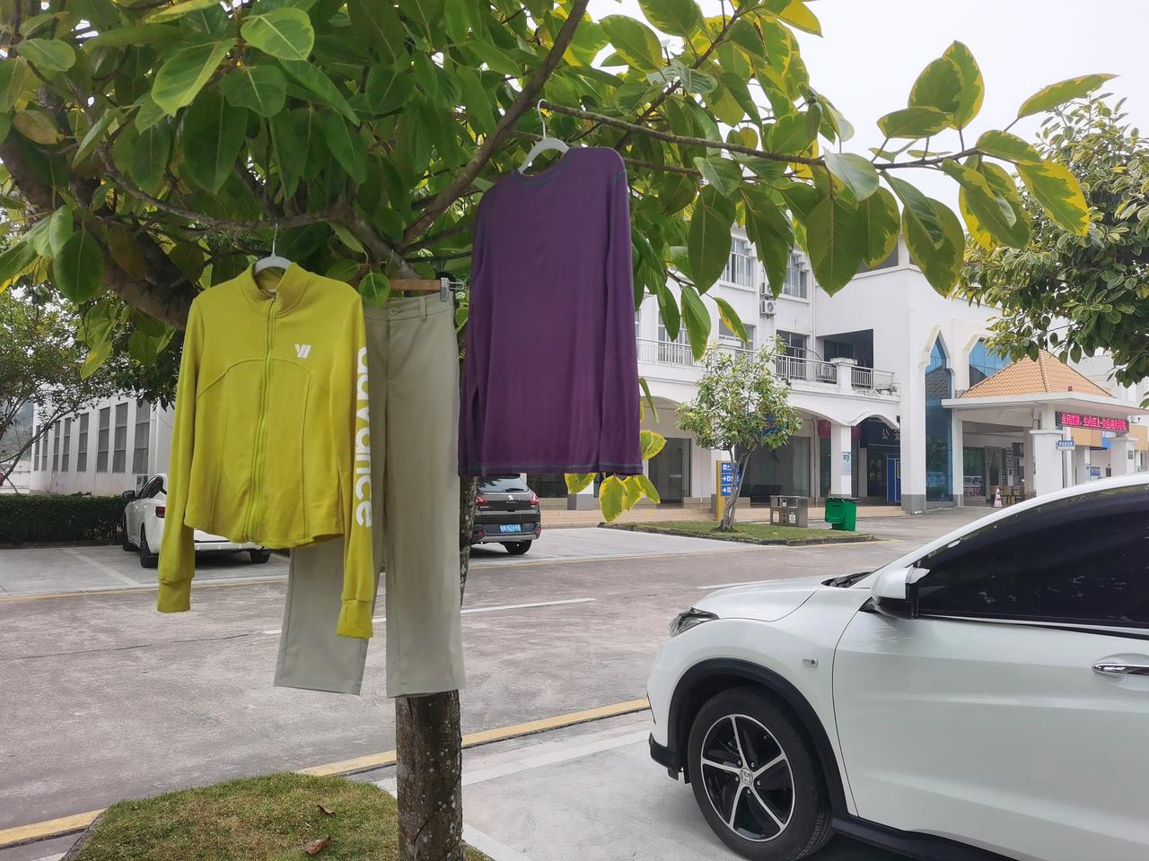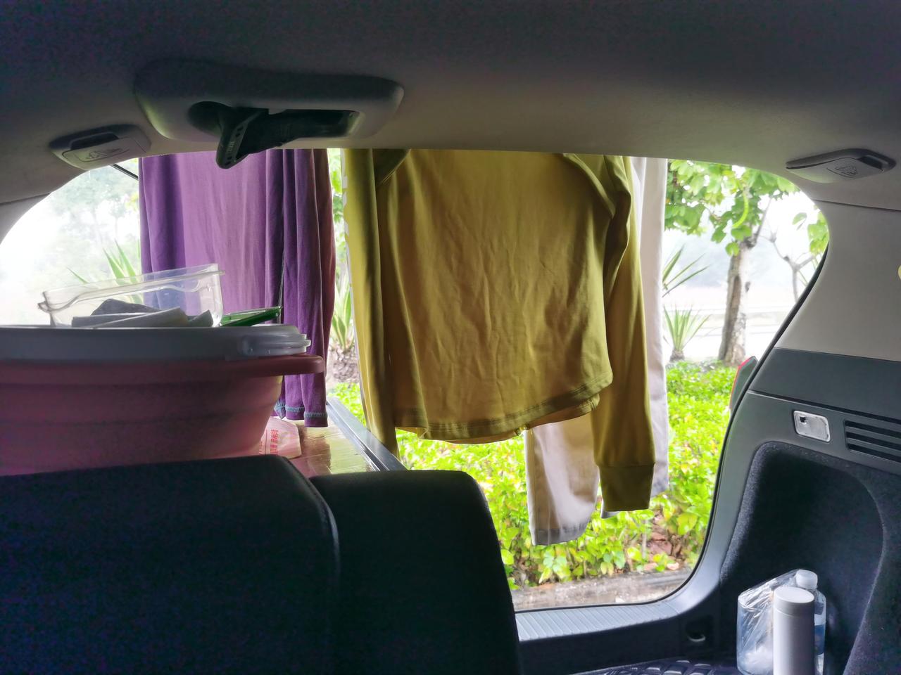 离开德天瀑布景区,直奔明仕田园,结果风景平平没惊喜~ 果断导航广东湛江,走国道跑了100多公里,傍晚5点上高速,把车停在广西钦州罗白服务区。 没想到这儿有不少车友过夜!有缘和两位同龄单身女车友凑一块儿,她们计划待两天,我正好想歇脚,干脆也住两天。 晚上花十块钱扫码洗了个热水澡,那叫一个舒服!趁凉快把换下的脏衣服洗了,这个服务区车少人少很安静。 早上起来,炖了个白菜豆腐,把头天洗的衣服晾上,结果中午下起了雨,只能把衣服挂到了车尾门上,窝在车里剪视频~ 这样慢悠悠的流浪生活,真的太惬意