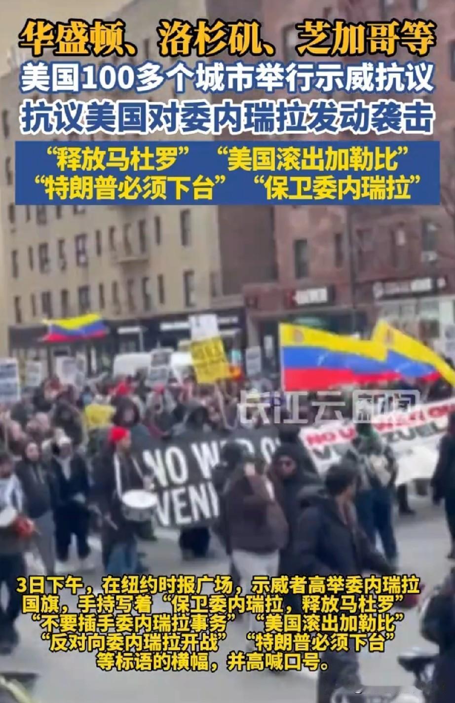 老特干得这事儿太不得人心了,美国人民都看不下去了,105个城市一起游行示威,要求老特下台,还焚烧了美国国旗。 老特这人出身房地产,做了多半辈子生意,每天都在算计挣了多少钱。他这次也算好了账,自己觉得抓走马杜罗夫妇,委内瑞拉就成了美国的天下,那里的资源都成了他们的。 可是他打错了算盘。委内瑞拉人民不屈服,代总统说要抵抗到底。美国人民也不愿意,说不能用纳税钱去打仗。 其实特朗普早想打委内瑞拉,可是没有国会批准,他不能动手,于是想了个阴招,直接抓人。 这种下三滥的手法都用上了,全世界都看不下去了,第三世界国家全都站出来反对,欧洲国家不吭声,现在美国人民也站了起来,游行示威,反对他的暴行。 得道者多助,失道者寡助。靠武力是不会让别人屈服的,老特带着美国开历史倒车,终将被全球反霸洪流碾得粉碎,落个众叛亲离、自食恶果的下场!