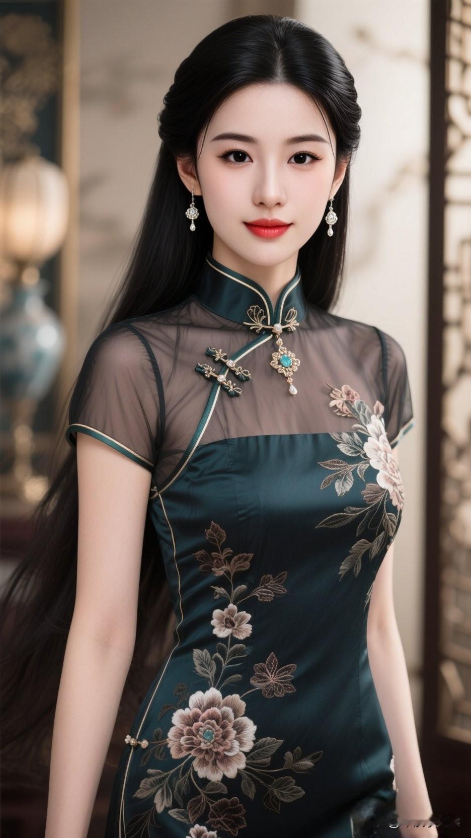 温婉优雅的旗袍美人,古典韵味十足!青瓷如玉,花影映人,最是一抹相思魂,难忘今宵别梦寒。旗袍秀东方美人