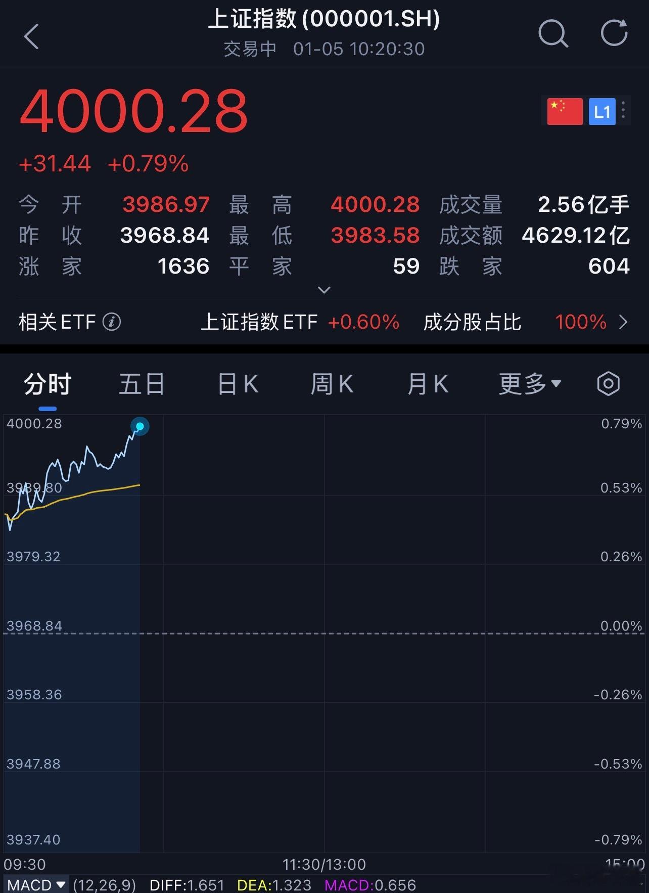 a股 回应一下空头们:26年开年第1个交易日创造12连阳的历史,同时突破并站稳4000点,怎么看也不是卖出信号。。 A股再次涨破4000点沪指收复4000点关口