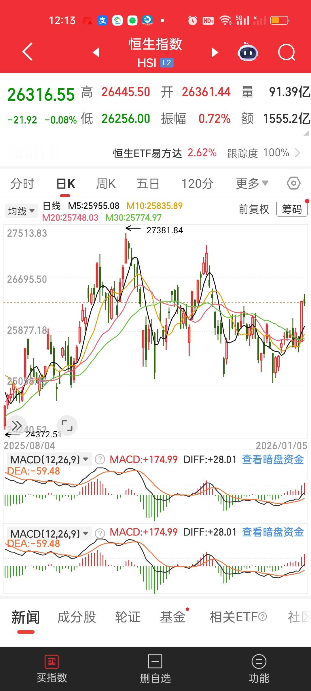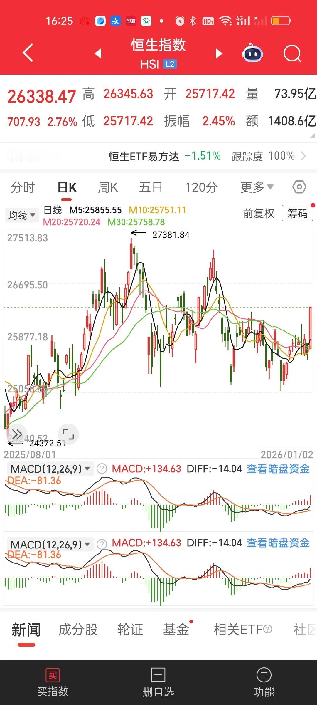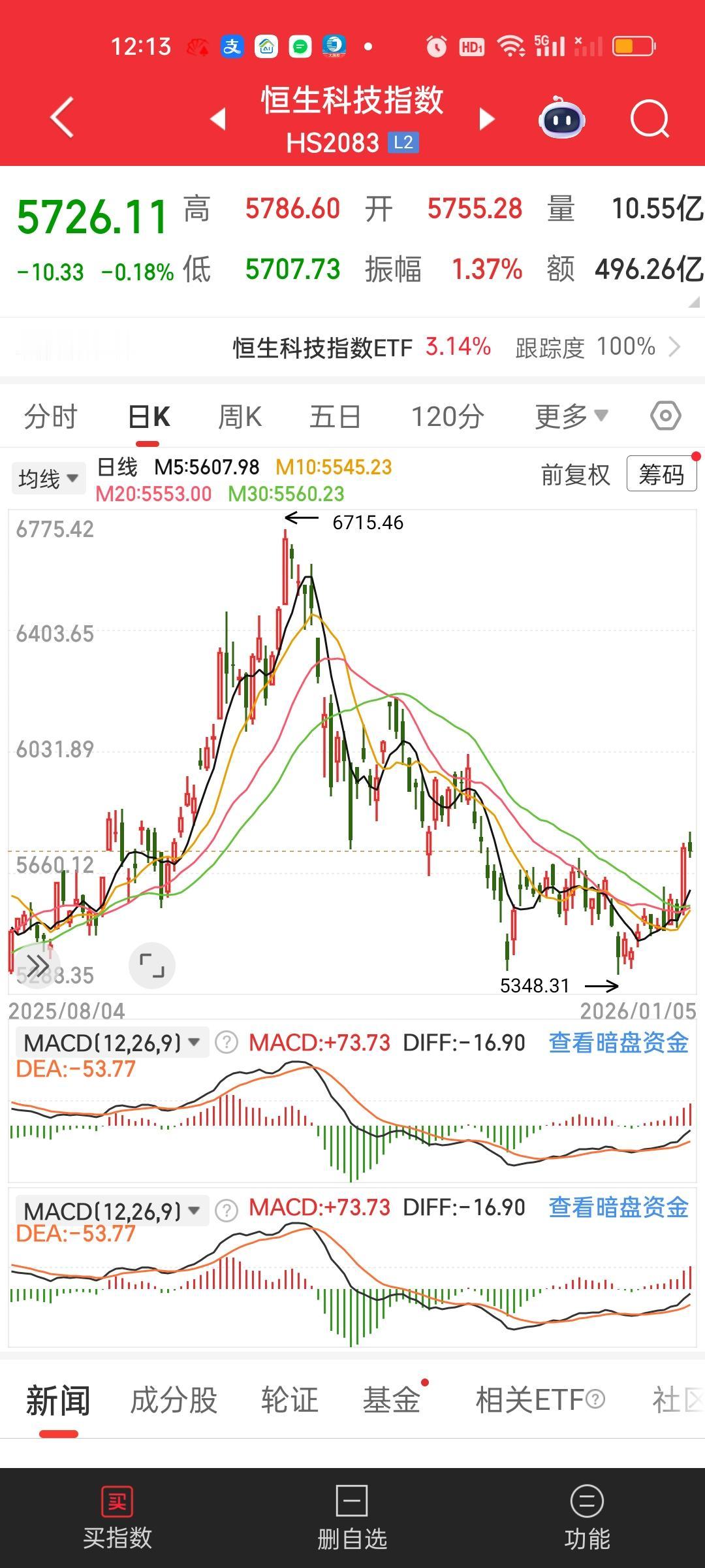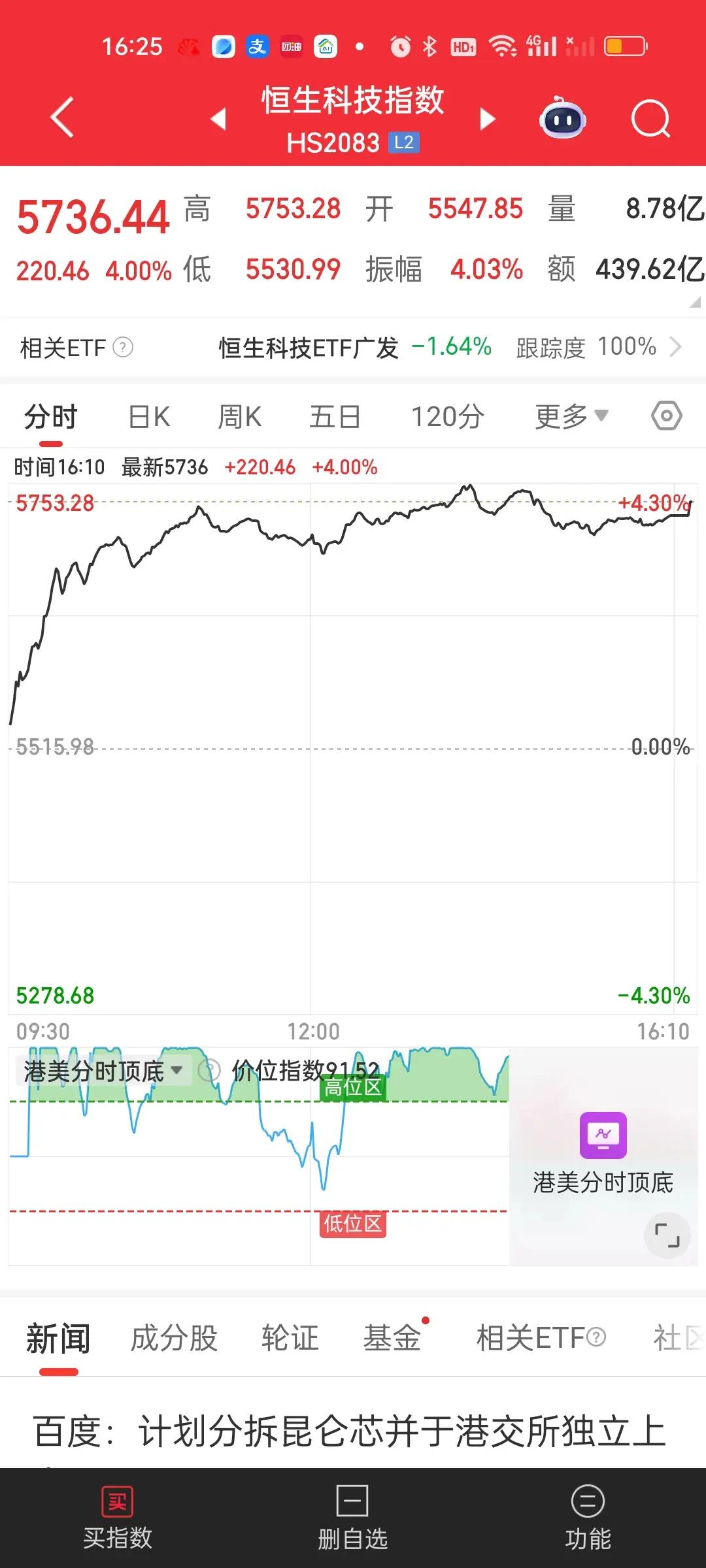 港股大家不用担心!上午尽管冲高回落了,但两个指数依旧站在所有均线的上方,而且上周五的涨幅是足够大的,底子挺厚。上周五恒指涨了2.76%,恒科涨了4%,就算扣掉上午的跌幅,恒指依旧涨了2.76-0.08=2.68%,恒科依旧涨了4-0.18=3.82%,所以今天净值开出来依旧是大涨的状态!