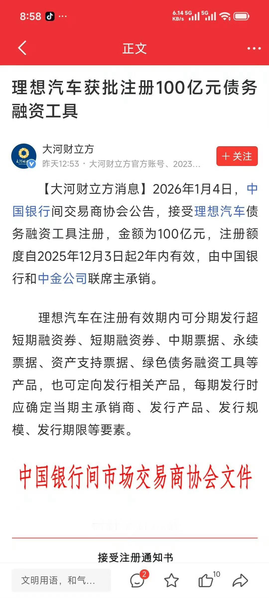 理想重启战略融资…网友:理想大势已去…友商常年融资度日…网友:再创辉煌,再信一次…对于融资,各有各的活法,对于理想而言,重回初创企业的状态,很好…理想汽车