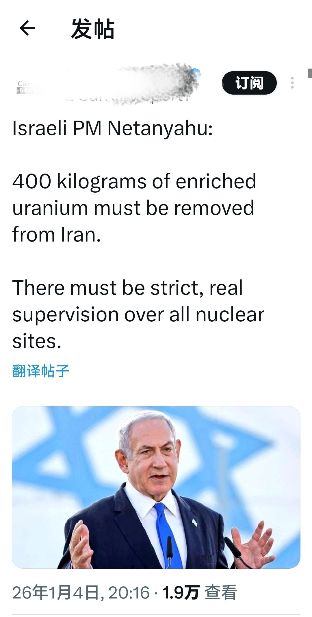 以色列总理内塔尼亚胡:必须从伊朗运走 400 公斤浓缩铀。必须对伊朗所有的核设施进行严格的、切实的监管。必须立即行动。海外新鲜事何天恩