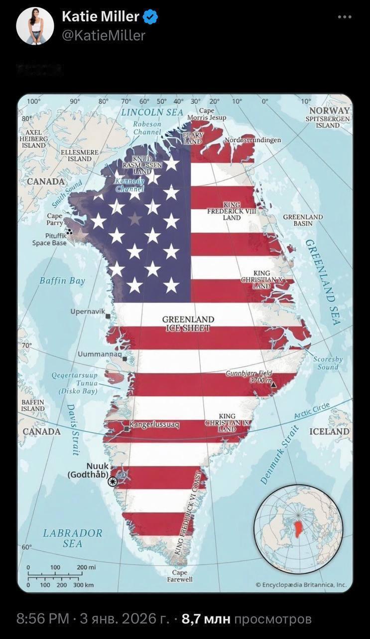 特朗普总统一位高级顾问的妻子发布了一张格陵兰岛的地图,地图上用美国国旗的颜色进行了标注,并配文“即将到来。”海外新鲜事何天恩
