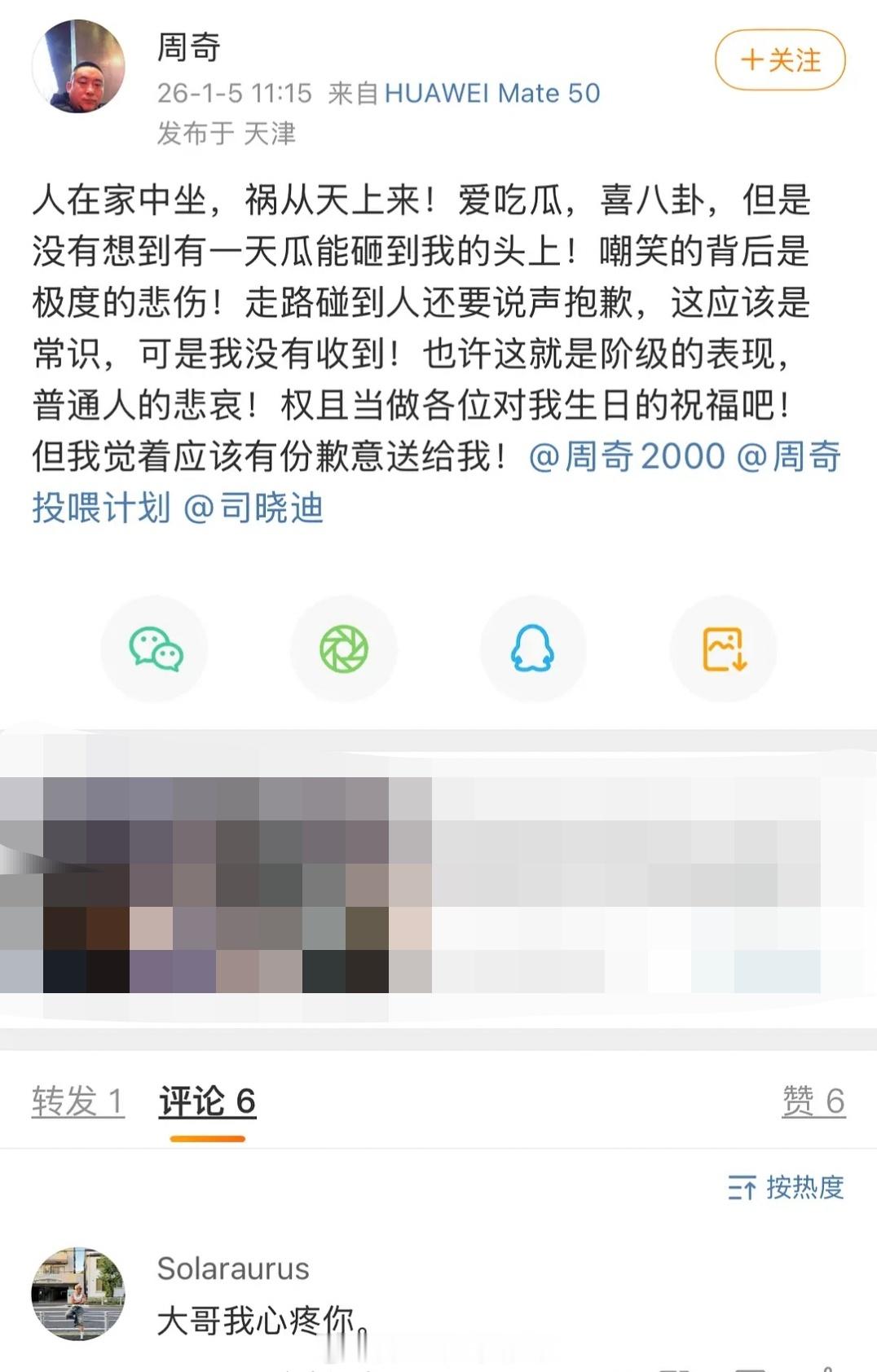 周奇的回应来了!!!还艾特了司晓迪本人希望能收到她的道歉素人周奇说人在家中坐祸从天上来周奇 希尔顿欢朋 周奇 聊天记录
