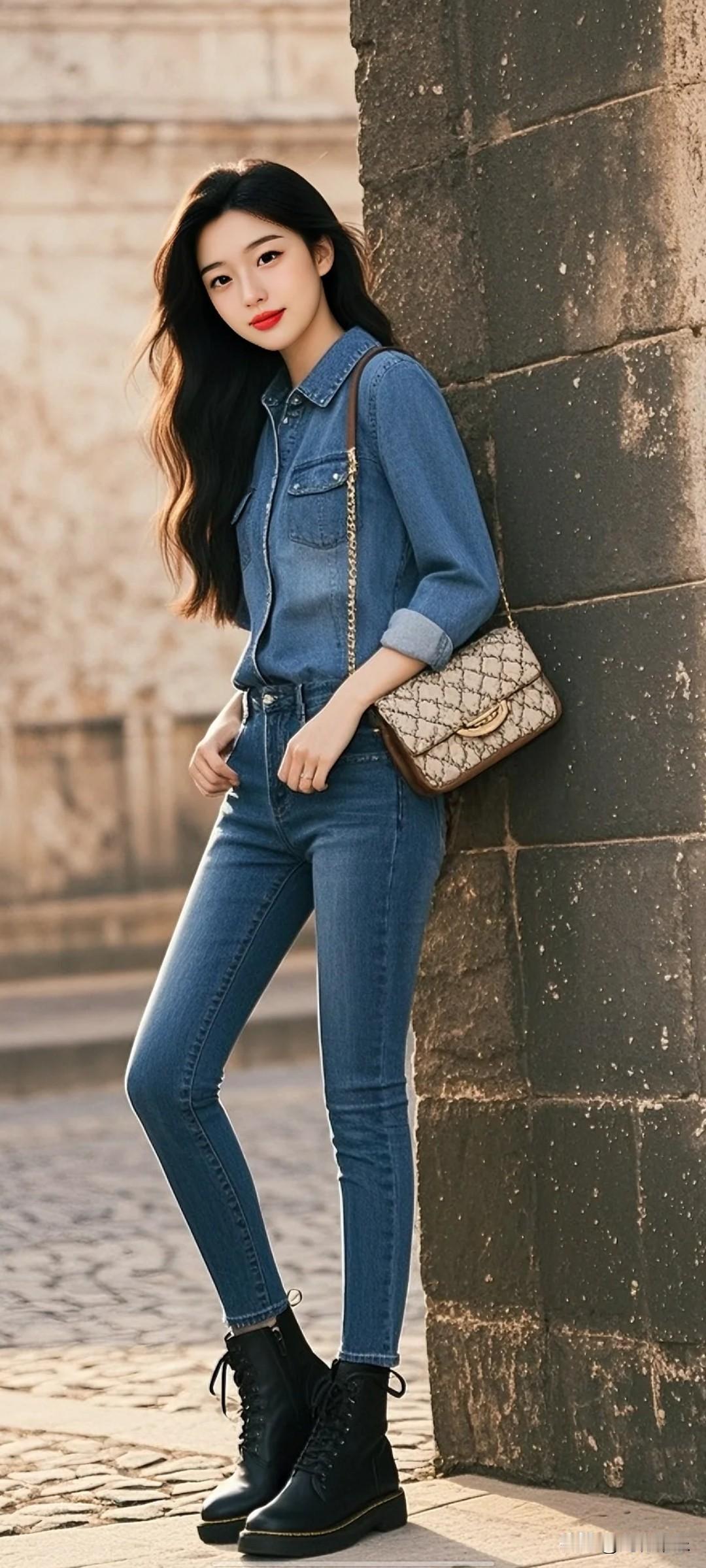 晒图笔记大赛高清人像,以专业人像摄影风格呈现。具有电影质感的胶片摄影,采用印象风格,呈现朦胧诗意且带有独特颗粒感、专业人像摄影图片,展现温馨艺术氛围与古典油画般的质感。高清人像,以专业人像摄影风格呈现。具有电影质感的胶片摄影,采用印象风格,呈现朦胧诗意且带有独特颗粒感、专业人像摄影图片,展现温馨艺术氛围与古典油画般的质感。运用大师级的非常规独特构图,营造光影斑驳、虚焦的氛围。一年轻美女,皮肤白皙貌美,乌黑长发及腰,穿着初秋款牛仔衬衫塞在裤子里,下身穿同色系牛仔铅笔裤。脚穿一双马丁靴,拿提咖色小包,面对我微笑着,肩膀微靠墙上,站姿自然。老石墙,电影质感最美的女人什么样 有哪些让人怦然心动的照片 vlog打卡每日穿搭
