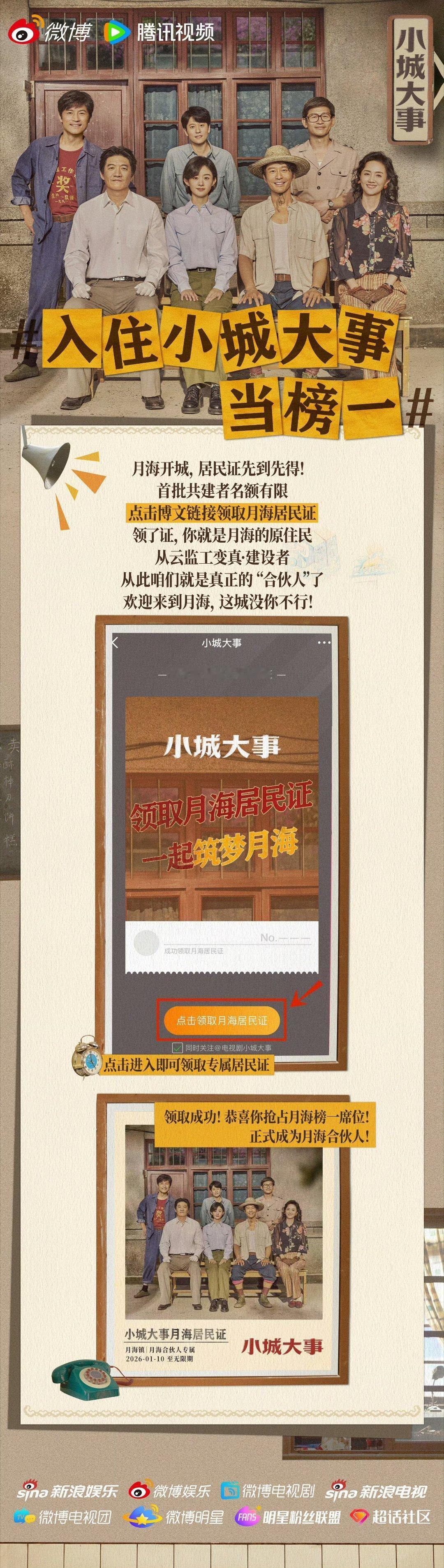 入住小城大事当榜一小城大事一座城一群人小城大事 第一批月海人报道!《小城大事》定档1.10,角色鲜活有烟火气,奋斗故事看得人热血上头,这波必须狠狠追剧!