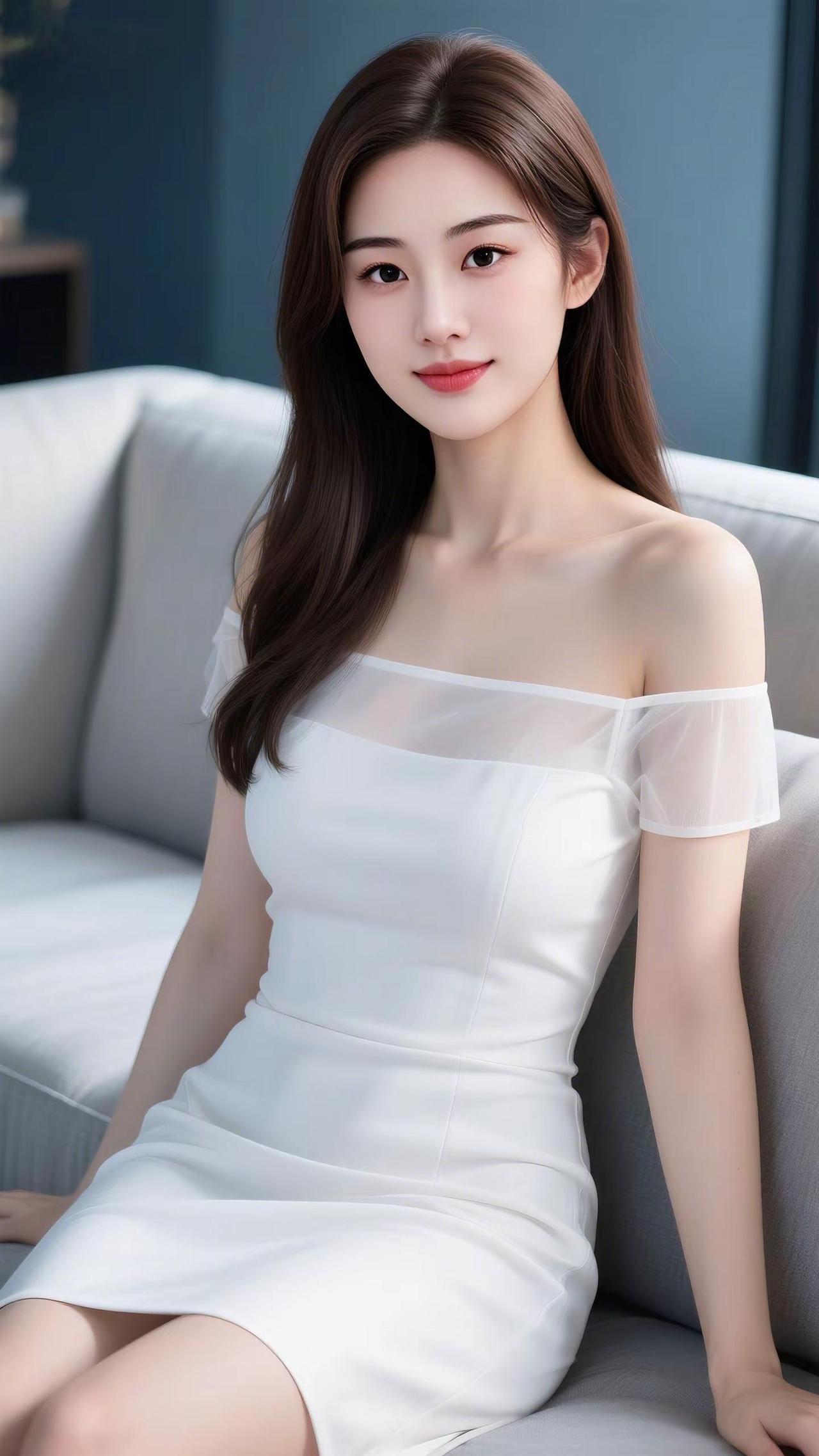 温柔甜美的少女,蓝色吊带裙搭配白色蝴蝶结,清新自然。