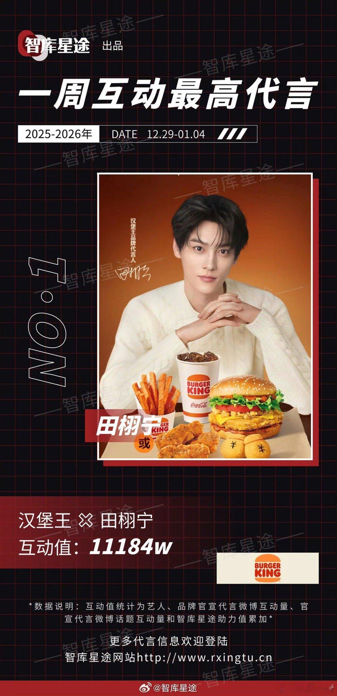 上周互动最高代言:田栩宁