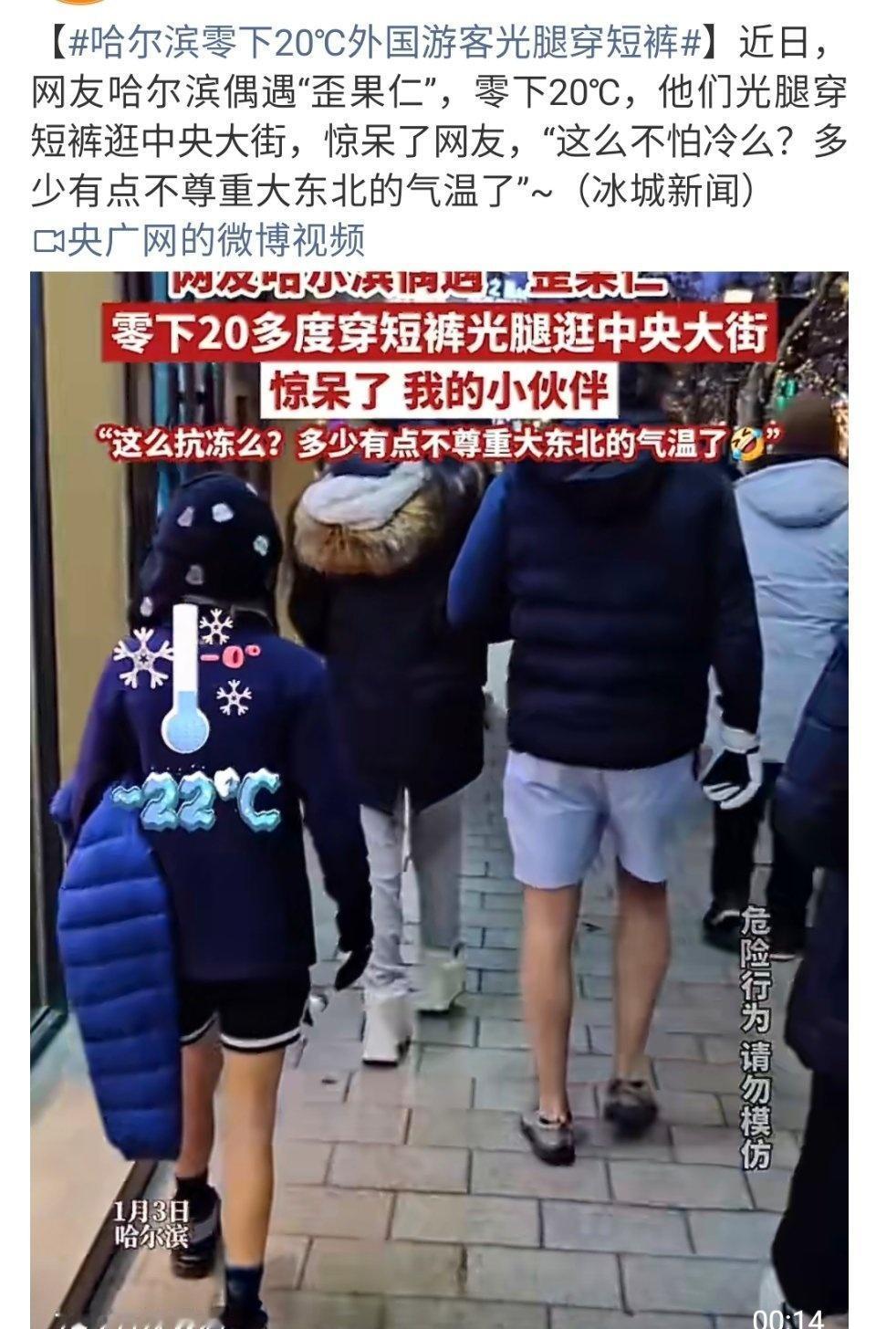 哈尔滨零下20℃外国游客光腿穿短裤元旦前夕,辽宁的朋友来赣,说南昌体感温度比辽宁还冷