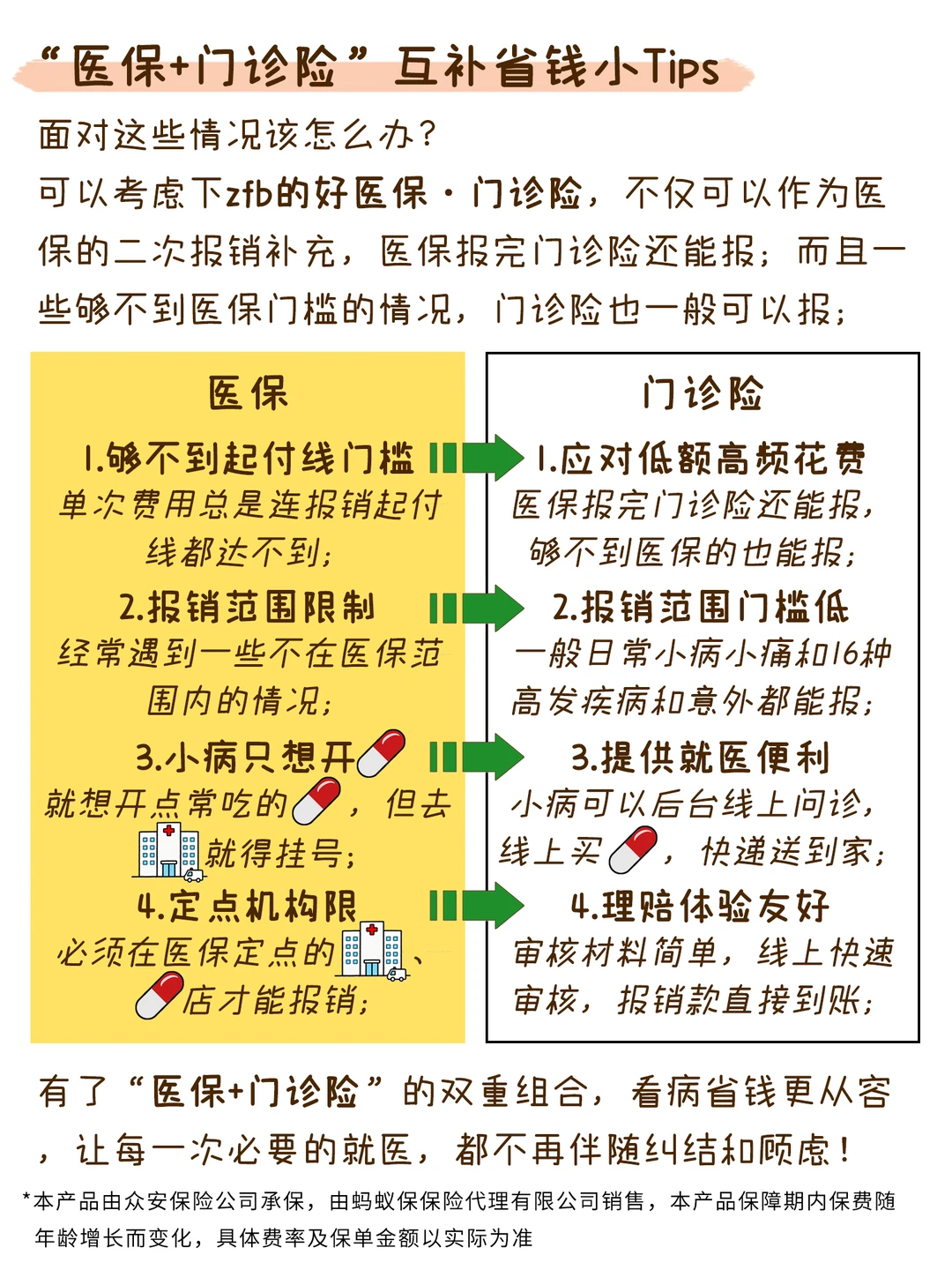 有了医保+门诊险的双重组合,看病省钱更从容,让每一次必要的就医,都不再伴随纠结和顾虑!