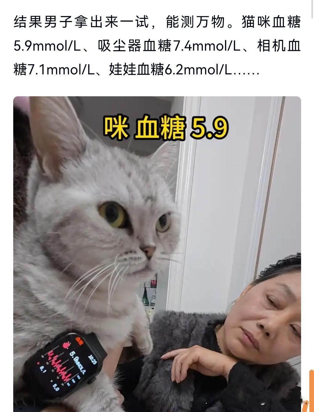 这真是太不靠谱了,太坑人了。 近日上海一男子发现,父母84元网购手表测出吸尘器血糖7.4。 这个产品宣称精确度99%。 结果男子拿出来测试,发现能测万物,竟然吸尘器都能测出血糖来。 这东西太离谱了。 这下父母知道上当了,以后再也不买了。