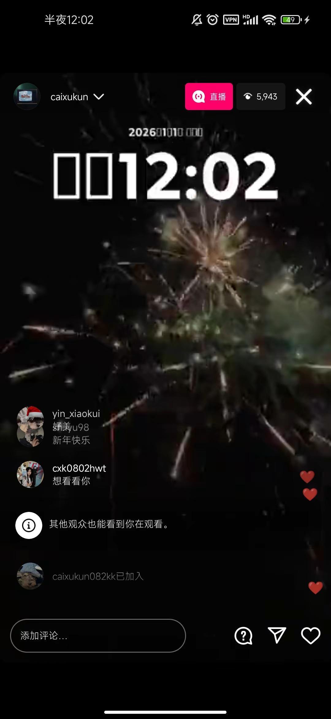 新的一年继续听你的歌许愿再见你一面就这样宠我们,开直播给我们看烟花蔡徐坤